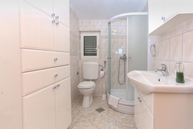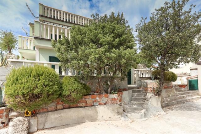 Huset ligger 50 m fra havet i et roligt sted nær Trogir, Sevid. I dette hus tilbyder vi 3 lejligheder 4+2. Lejlighederne har et fuldt udstyret køkken, satellit-tv og aircondition - varme, Wi-Fi internet. Parkering er forudsat, fortøjning også. I nærheden af huset har du alt hvad du behøver, strand, restaurant, supermarked, kaffebar. Lejlighed 1 (4+2) * * * Det er stuelejlighed, ca. 50 m2, med 2 værelser, lille toilet, større toilet, køkken, stue med sofa til 2, balkon, aircondition, wifi, parkering. Lejlighed 2 (4+2) * * * Lejlighed på 1. sal, ca. 75 m2, 2 værelser, lille toilet, større toilet, køkken, stue med sofa til 2, balkon, aircondition, wifi, satellit-tv, parkering. Lejlighed 3 (4+2) * * * På anden sal har den ca. 75 m2, 2 værelser, lille badeværelse, større badeværelse, køkken, stue med sofa til 2, balkon, aircondition, wifi, satellit-tv, parkering.
