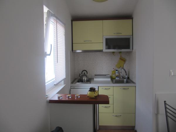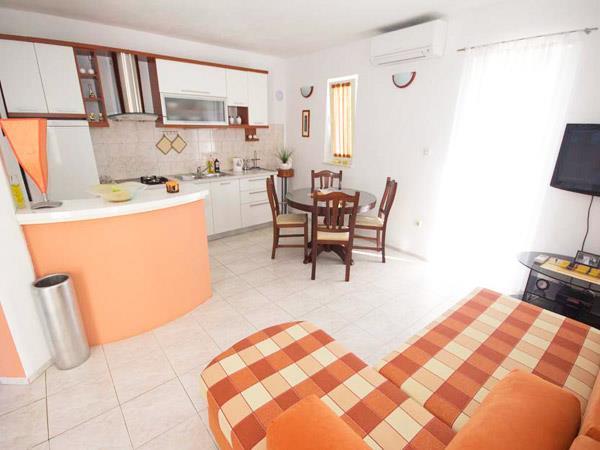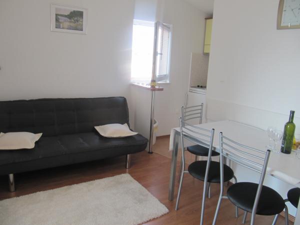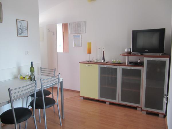 Lejligheden ligger i stueetagen, rummelig og godt udstyret med alt hvad du behøver i køkkenet. Dobbeltseng i rummet var kun at se lidt stiv, men meget behageligt til at sove. Her opholdt vi en uge. Det har ikke været langsom og godt bearbejdet. Fra terrassen og balkon med en dejlig udsigt over havet. Værterne var meget venlige og beæret os med vin og figner. Strandene er ikke langt væk (4 min gang), og de lokale har deres muldyr til den vestlige del af huset, som vi anvendte. Det er helt klart vand. Ophold med Mirjana og Branka virkelig kunne lide os og ønskede at komme tilbage her.