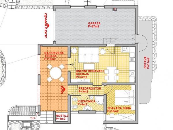 Ferielejligheder Rosmarin og Olive er beliggende i den rolige landsby Sevid nær Rogoznica. De er placeret i huset, som er i første omgang ved havet. Lejlighederne er nye, består af et soveværelse, et fuldt udstyret køkken, stue og badeværelse og en dejlig terrasse med udsigt over havet og solnedgangen. Med lejligheden Rosemary (ID 35399) vores gæster har en garage, depotrum, grill, have med udendørs bruser og to liggestole og parasol. Med lejlighed Olive (ID 54167) til rådighed for deres parkeringsplads, lille opbevaringsrum, en lille bærbar grill, en have med udendørs bruser og to liggestole og parasol.