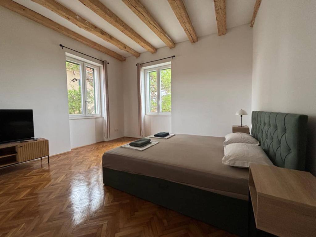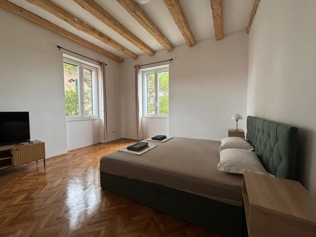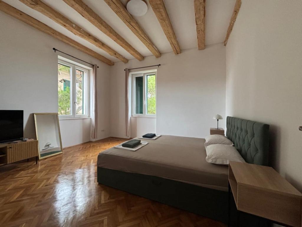Velkommen til Apartment Spas! Langs St. Spasa-gaden, som går ned forbi St. Spasa-kirken, når du byens centrum på få minutter til fods. Fra den varme middelhavssol vil du blive beskyttet af skyggen fra århundrede gamle cypresser, pittosporum og fyrretræer, der pryder gaden og haven foran din bolig. I haven kan du grille og slappe af på liggestole og bænke. Lejligheden ligger på anden sal med udsigt over Šibenik-bugten og St. Michael-fæstningen, som kun ligger ti minutters gang væk. Du finder Spas i en stille blindgyde, som er tæt på alle faciliteter, men virker kilometer væk fra byens travlhed.