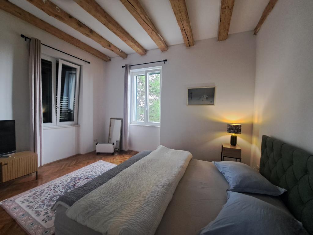Velkommen til Apartment Spas! Langs St. Spasa-gaden, som går ned forbi St. Spasa-kirken, når du byens centrum på få minutter til fods. Fra den varme middelhavssol vil du blive beskyttet af skyggen fra de århundrede gamle cypresser, pittosporum-træer og fyrretræer, der pryder gaden og haven foran boligen. I haven kan du grille og slappe af på liggestole og bænke. Lejligheden ligger på anden sal med udsigt over Šibenik-bugten og St. Michael-fæstningen, som kun ligger ti minutters gang væk. Der er to soveværelser med dobbeltsenge, en stue med en sovesofa, et fuldt udstyret køkken, et badeværelse med bruser og en rummelig balkon, hvor du kan nyde din morgenrutine med fuglesang eller udsigten til magiske solnedgange. Du finder Spas i en stille blindgyde, som er tæt på alle faciliteter, men virker kilometer væk fra byens travlhed. Der er en privat parkeringsplads i nærheden af boligen.