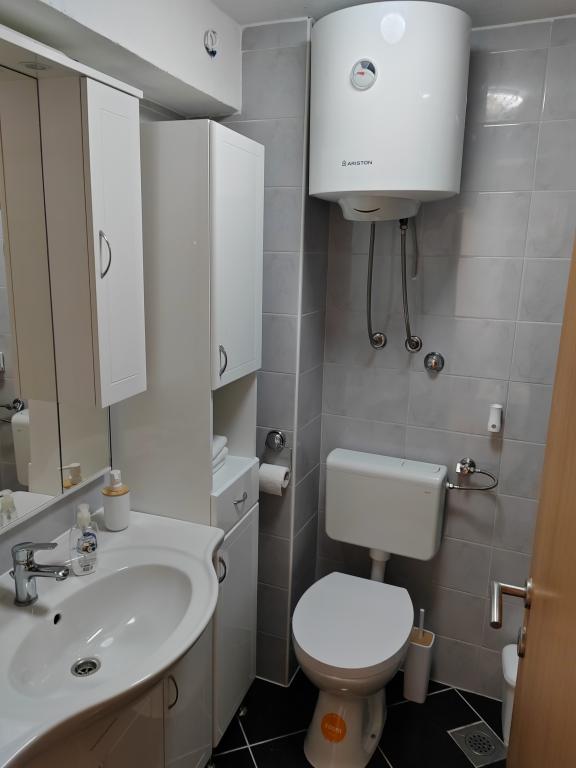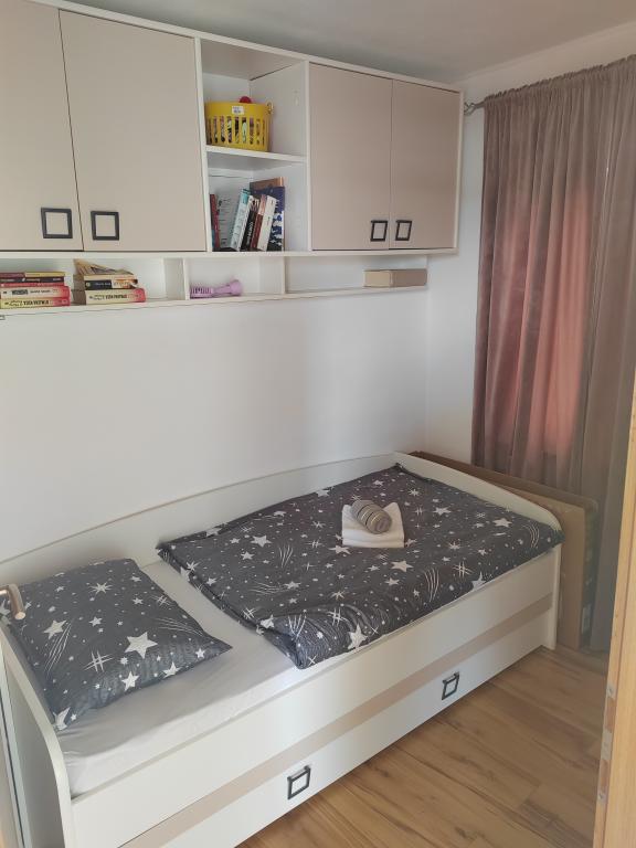 Hus til op til 5 personer med balkon og en smuk udsigt over havet og lystbådehavnen. Gæster har parkering, gratis wifi, aircondition, tv med masser af kanaler, Netflix... Du behøver kun 5-10 minutters kørsel til den første strand. Solaris ligger i nærheden, hvor du har et indendørs og udendørs vandland, så det er åbent hele året rundt, byens centrum ligger 10 minutters kørsel væk, vi har 4 smukke fæstninger at besøge, to nationalparker og meget mere. Huset er ideelt til en familieferie og afslapning med udsigt over havet. Den rolige beliggenhed giver mulighed for et behageligt ophold, og balkonen er perfekt til morgenkaffe eller aftenafslapning. Jeg står altid til rådighed for yderligere information.