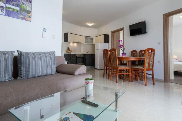Nye og fuldt udstyrede lejligheder er beliggende i den lille fiskerby Simuni, ideel til en familieferie. Hver lejlighed har sin egen overdækket terrasse med en smuk udsigt over havet. I gården til huset er der en grill, en havebruser. Parkering til bilen er til rådighed. I umiddelbar nærhed af lejligheden er der butik, fiskemarked, restauranter og vekselkontor.