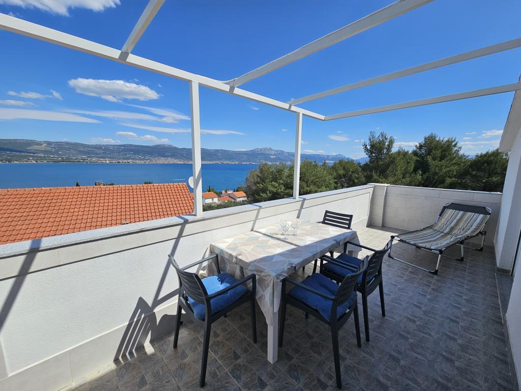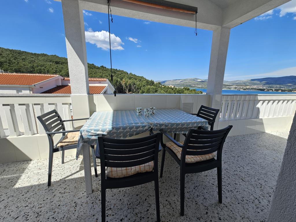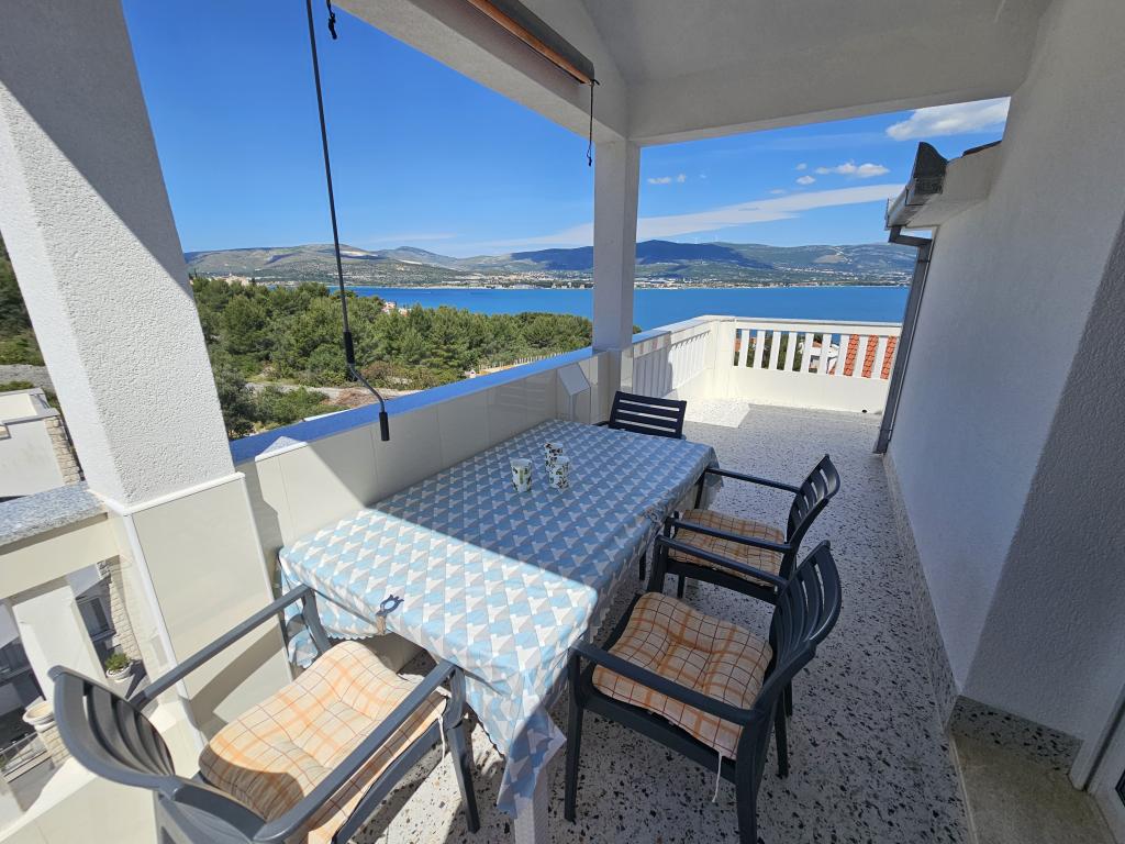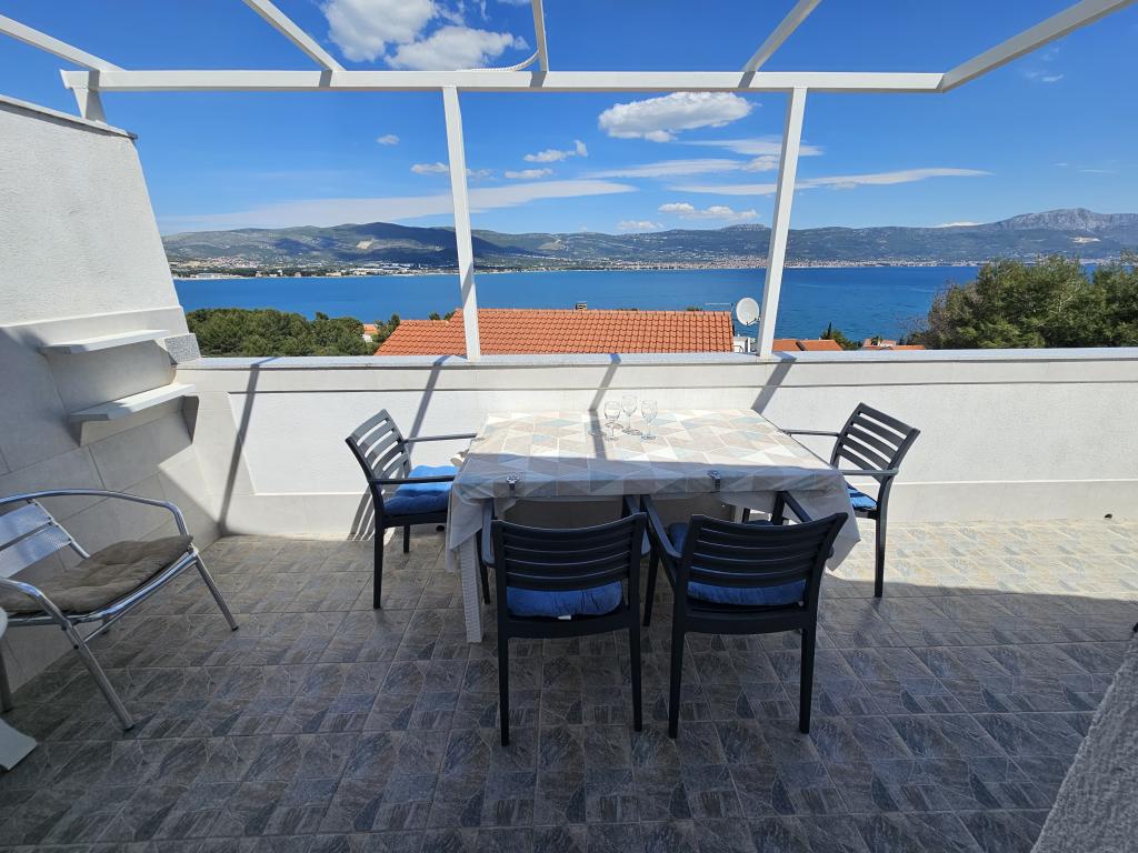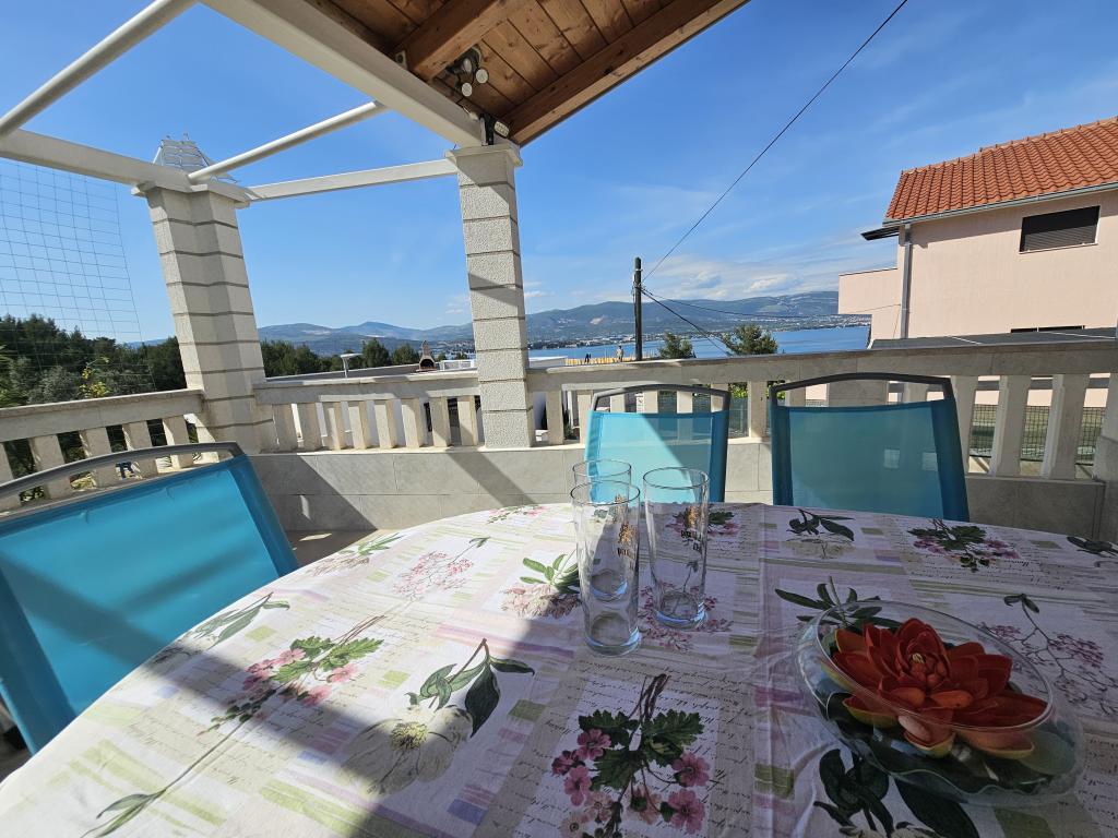 Vi er en familie med 2 voksne og 3 børn (7, 10 og 11 år), og vi havde en god ferie i denne lejlighed! Lejligheden har en dejlig udsigt på havet, nogle minutter for at gå til havet, stranden er ikke meget overfyldt og har nogle skygge, lejligheden var ren da meget godt vedligeholdt, rolig, meget venlig ejere. Adgang til øen tager tid på grund af broerne, du har til at passere. Vi besøgte Split (med båd, afgang danne Slatina), Trogir (parkere din bil før broerne og gå til Trogir, er det ikke langt til fods), gjorde en fisk picnic fra Trogir (båd Mistica) og vi besøgte omgivelserne af en kirke i nærheden af Slatine (smukke omgivelser). Tæt på lejligheden er et supermarked og restauranter.