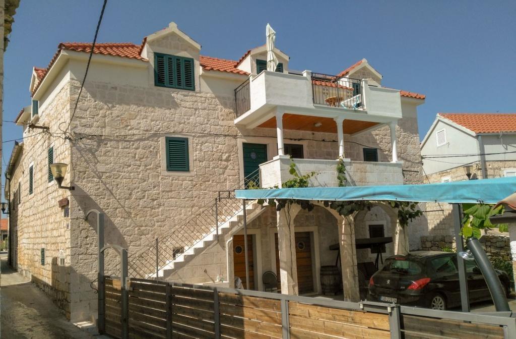 Turistskat er inkluderet i prisen. Dokumentation for reservationsbekræftelse ved reservationHuset er unikt i sin arkitektur, i naturen er det en meget gammel stenvilla med ovenlys på taget, en veranda dekoreret med stenhvælvinger og en terrasse, og foran hvilken der er en gårdhave prydet med et smukt lille stenhus, hvor der er en skorsten med grill og ovn, og massive træbænke og et bord, og dermed skabe et sommerkøkken til exceptionelle gourmetsammenkomster og oplevelser af det lokale traditionelle køkken, med hjemmelavet vin og brandy til rådighed for gæsterne. Foran indgangen til lejlighederne på 1. sal er der en stor terrasse (loggia) med et rum, hvor man kan nyde en kop te, kaffe eller et glas vin. Rygning er også tilladt her. En stor terrasse med træbænke og et bord i gården ved siden af sommerkøkkenet og en solbruser er til rådighed for gæsterne. På loftet er der på 2. sal en stor og rummelig lejlighed med stor stue hvorfra der er udgang til rummelig altan, samt to separate værelser med hvert sit badeværelse. Det ene værelse har en dobbeltseng 200x160 og det andet har to senge.