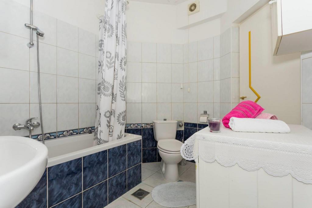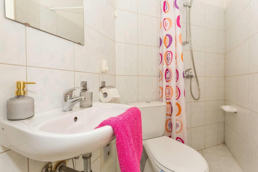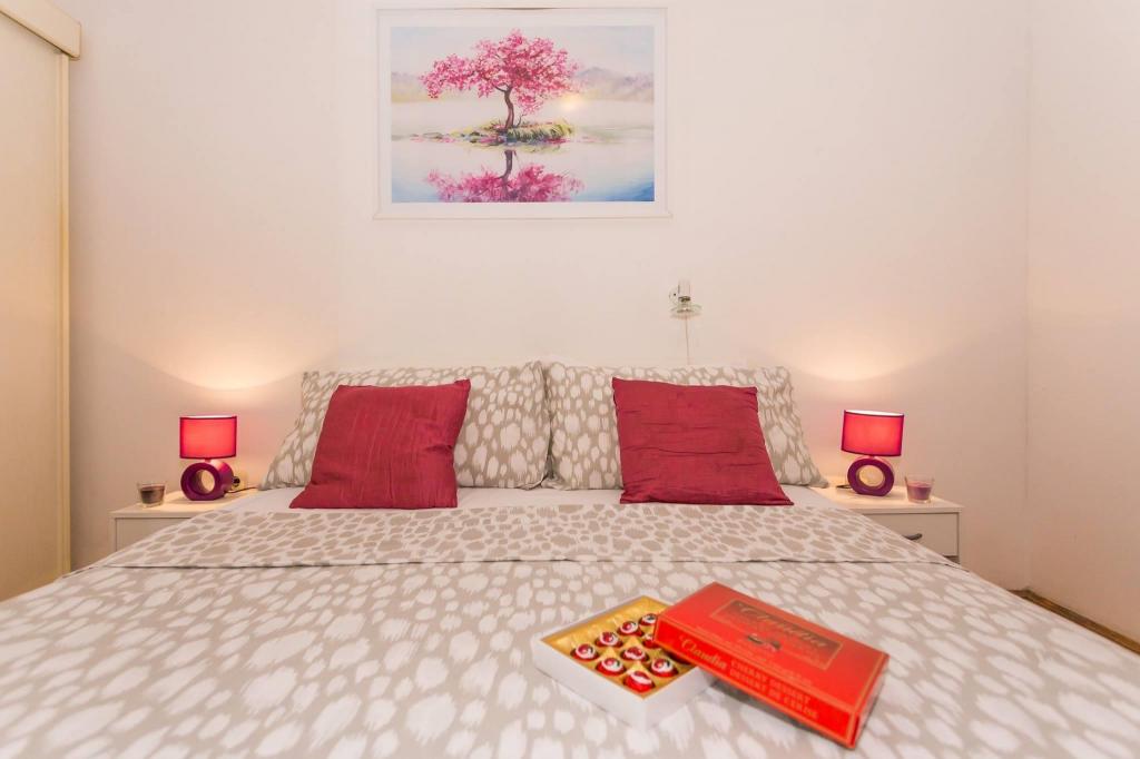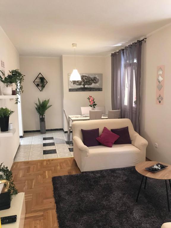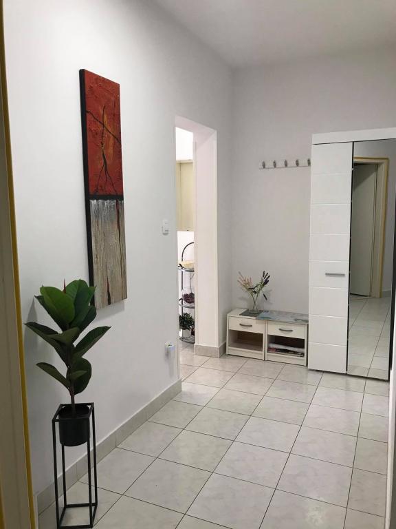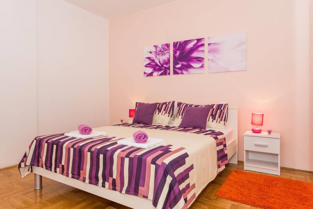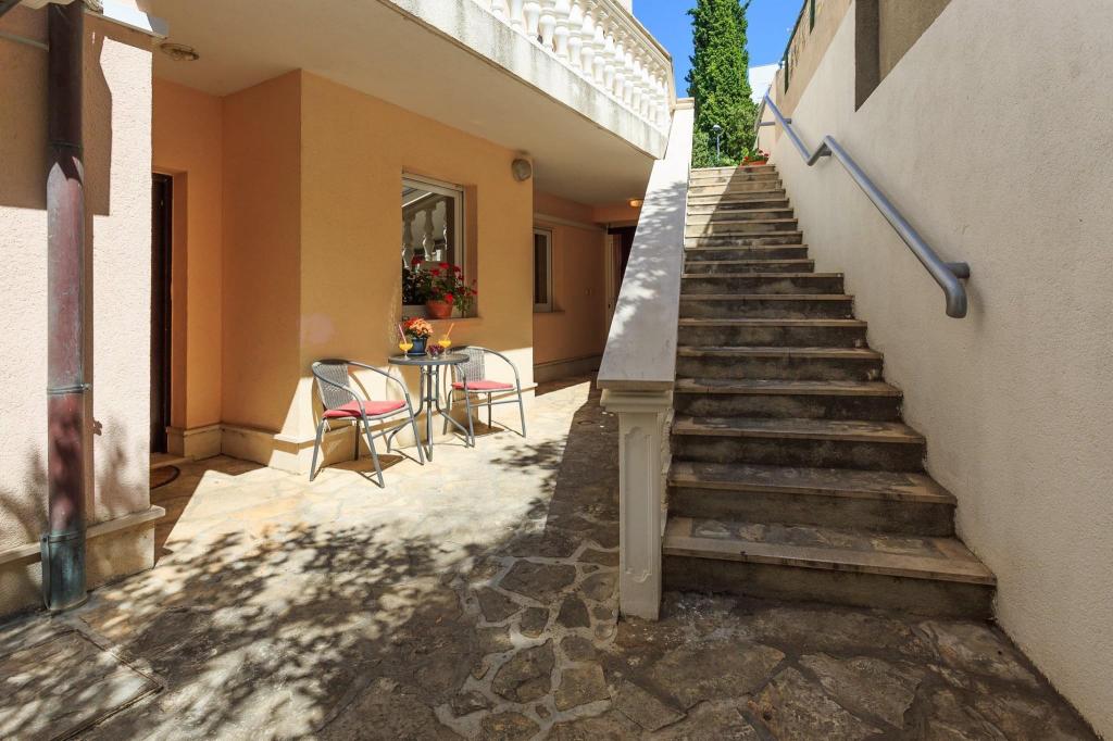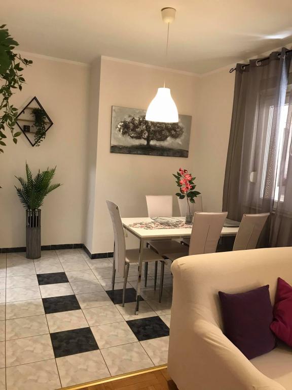 Lejligheden ligger i den første række mod havet i en ny bygning. Lejligheden indeholder to store soveværelser med dobbeltsenge, to toiletter, køkken, spisestue, stue og terrasse. Lejligheden ligger 200 m fra den første stenstrand og 300 m fra sandstranden. Afstanden til den første café og restaurant er mindre end 100 m, café Renato, Tennisbar og Mythos, restaurant Velo Misto og Barkarola. Afstanden til byens centrum er omkring 20 minutter til fods. I en afstand af 100 m er der tennisbaner til leje.