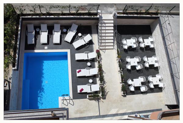 Gæsterne kan benytte bar med udendørs terrasse og solterrasse ved poolen. Privat parkering inkluderet.