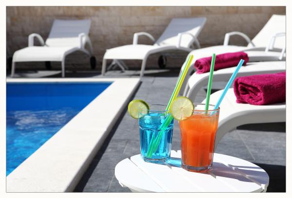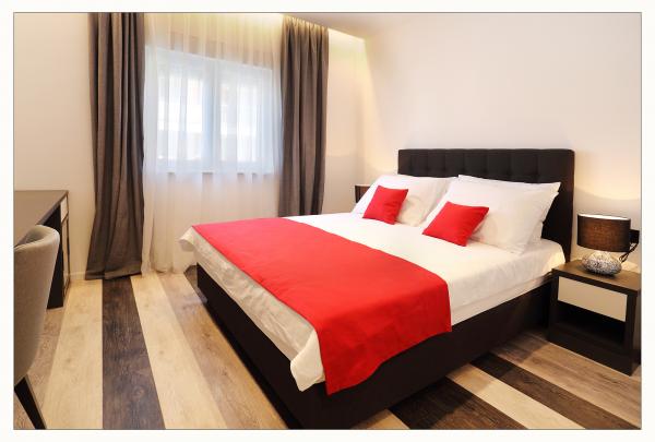 Moderne indrettede dobbeltværelser og lejligheder i en privat villa med swimmingpool.