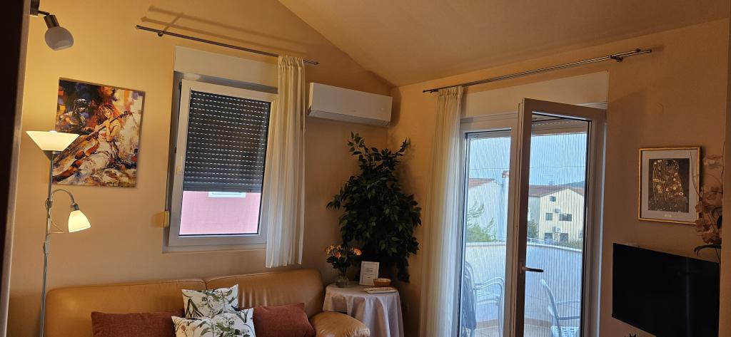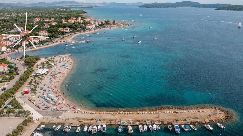 Ny og moderne lejlighed på et roligt sted i Srima nær Vodice med havudsigt. Den smukt anlagte strand er ca. 100 meter. Anlægget er beliggende ca. 200 meter fra centrum af landsbyen, og 25 minutter til fods (langs promenaden) til byen Vodice.