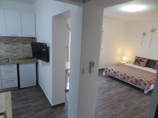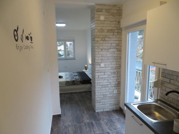 Nye lejligheder, fuldt møblerede og moderne inden for stranden (30 meter til havet), kun 200 meter fra centrum. Hus med lejligheder er en hel renoveret i 2018. Studio lejlighed er sort - hvid med en balkon. Lejlighed 2 1 med balkon og havudsigt i de smukke hvide og brune toner. Lejlighed 4 1 er den største, har to værelser med store senge. Et værelse er hvid - gylden farve, og den anden hvid og beige nuanceret. Hele lejlighed med køkken og spisestue har en udendørs terrasse med havemøbler. I nærheden er mange restauranter og butikker. Starigrad Paklenica er en ideel kombination af havet og bjergbestigning på grund af nationalparken Paklenica, som ligger meget tæt (1700 meter). Byen Zadar er også tæt på ethvert besøg, sightseeing, flyvning, fangst den lokale bus trafik, nyder de lokale delikatesser og lignende.