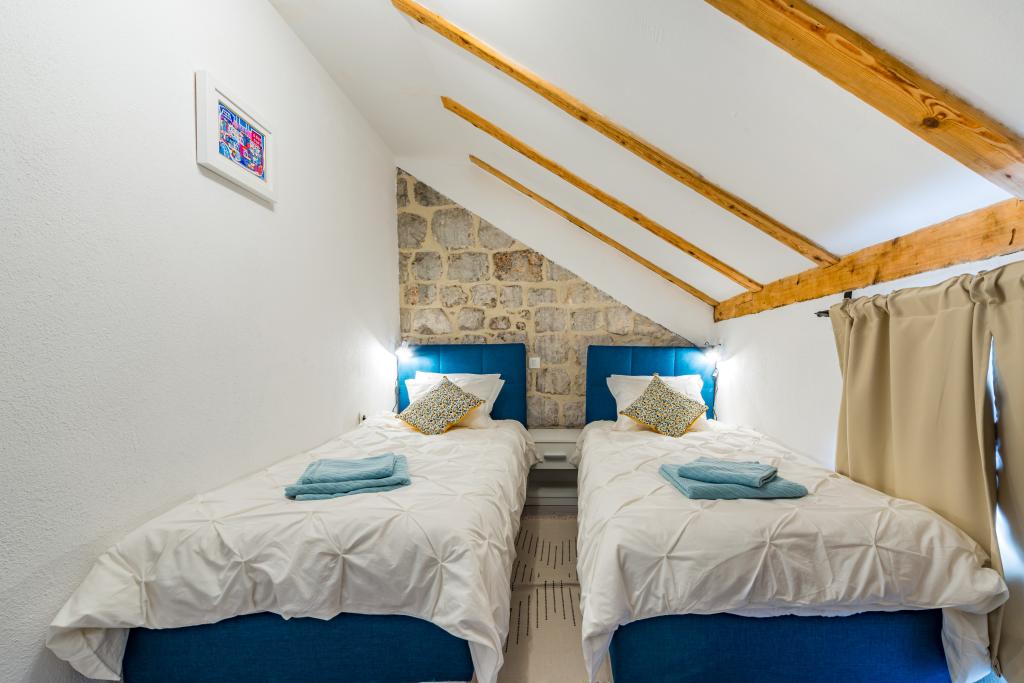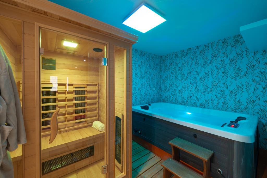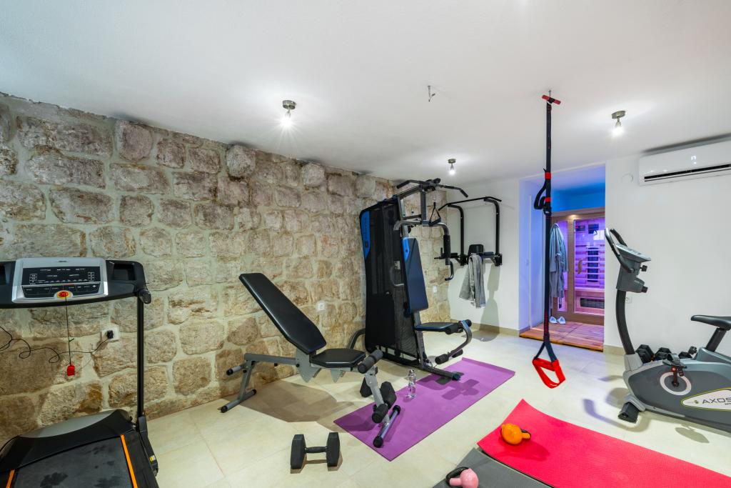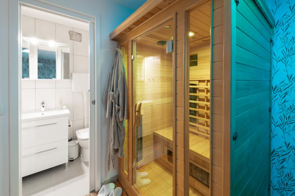 Denne smukt indrettede rustikke traditionelle villa er for nylig blevet renoveret, har egen indgang og dækker 100 kvadratmeter boligareal udelukkende til privat brug. Den har plads til 4 personer på værelserne og én person i en ekstra seng i stuen. I stueetagen har du et wellnesscenter til rådighed, som inkluderer et fitnessrum/gym, infrarød sauna og jacuzzi/spabad til din komplette afslapning. Badeværelset ligger ved siden af fitnesscentret. På første sal er der en stue med et fladskærms-Smart-TV (+ maxTv stream-kanaler), en spisestue, et fuldt udstyret køkken og et toilet. Anden sal består af 1 badeværelse og 2 soveværelser: Soveværelse 1 - To enkeltsenge Soveværelse 2 - To enkeltsenge - Badeværelset indeholder en vaskemaskine og en tørretumbler - Strygejern, strygebræt - Aircondition i stue/spisestue, hvert soveværelse og fitnessrummet/fitnessrummet - Badeværelserne, fitnessrummet/fitnessrummet og sauna/jacuzzi-området er udstyret med gulvvarme.