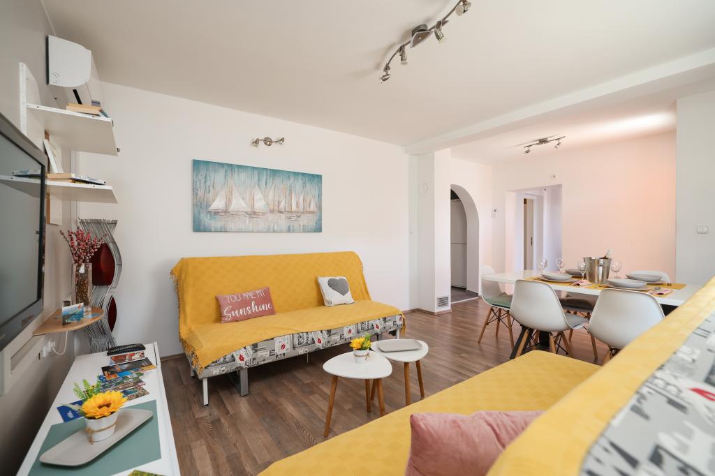Lejlighed ANAI / privat pool / Vi er beliggende i Sukošan - 12 km fra Zadar Lejligheden er den eneste lejlighed til leje/stueetage i et hus med to soveværelser (værelse 1 - dobbeltseng hjørnesofa, værelse 2 - dobbeltseng køkken (opvaskemaskine) , mikroovn, ovn, keramisk kogeplade, køleskab), badeværelse (vaskemaskine) stor stue (to sofaer, TV, spisebord) overdækket terrasse Afstand fra Zlatna luka strand: 800-900m paradis: sand i havet, 1200-1500. m Afstand fra klippestranden Tustica i fyrreskoven: 3000 m Nær centrum, bageri, butik, klinik, posthus, cafeer, restauranter 800-1000 m Lejligheden har aircondition, wifi, der er to foran lejlighed Swimmingpoolen er kun for gæster i ANAI-lejligheden.