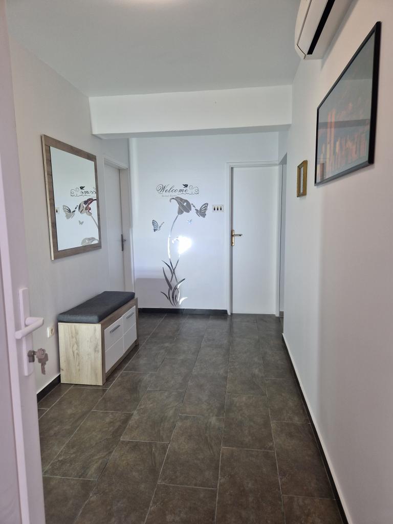 Hus med en indhegnet gård nær Dalmacija marina, fuldt møbleret, velegnet til familier med kæledyr, have, grill, aircondition, roligt kvarter med lidt trafik, huset er beliggende fem minutters gang til stranden og fem minutters gang til byens centrum, parkering for en bil i gården med en baldakin, naturlig skygge i gården fra flere typer middelhavstræer. Internet gratis.