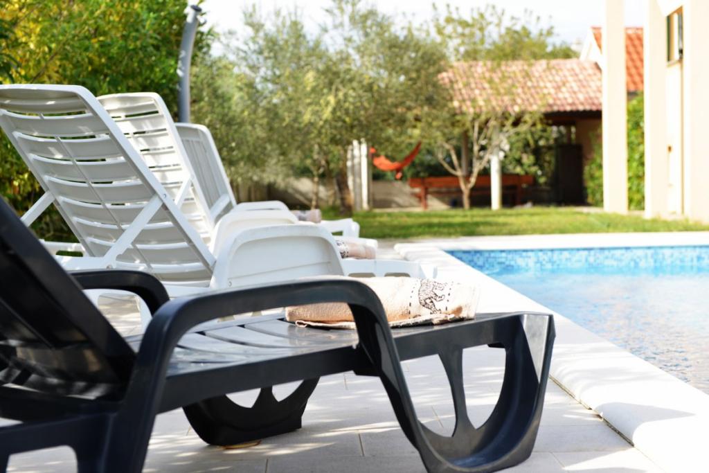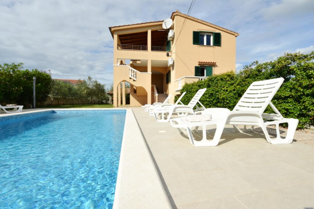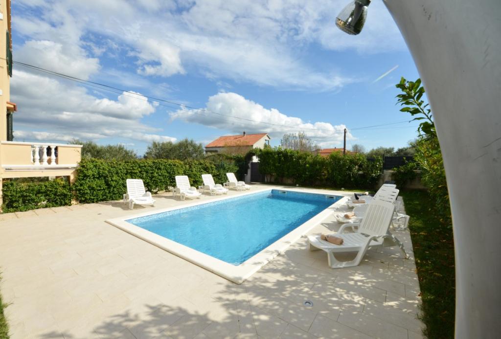 Fuldt og moderne udstyret villa til en familieferie med en swimmingpool på 8 x 4 meter i Sukošans bagland. Huset ligger meget afsides og roligt 4 km fra stranden og 15 km fra Zadar, som det er forbundet med via en motorvej (10 minutter). Ejendommen er et toetagers hus bestående af et tredobbelt soveværelse og tre dobbeltværelser, to badeværelser, to stuer og to køkkener, to altaner og et separat grillhus samt en overdækning foran. Ejendommen tilbyder en smuk udsigt over Velebit og Ravna Kotar-regionen, og kun 4 minutters gang væk ligger en beliggenhed (100 m over havets overflade) med panoramaudsigt over Sukošan, øerne i Zadar-øgruppen og en vidunderlig solnedgang. Huset har ubegrænset og gratis trådløst internet, gratis parkeringspladser og økologisk dyrkede grøntsager, der er tilgængelige for gæsterne. Efter aftale er der mulighed for at tilberede traditionelle dalmatiske specialiteter.