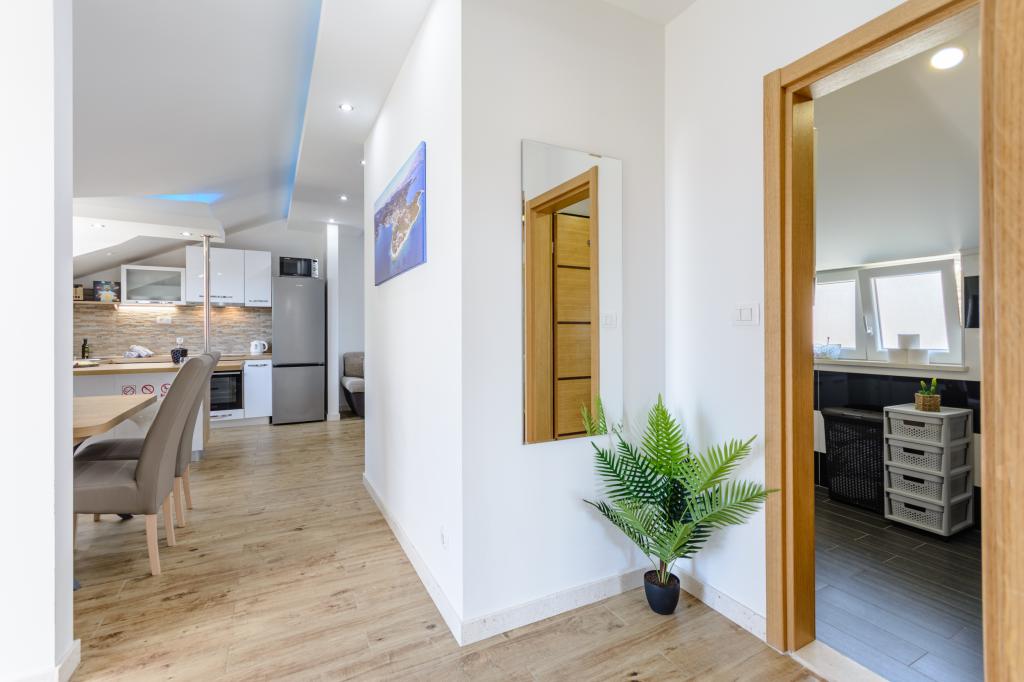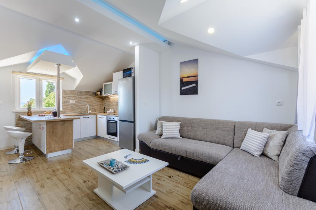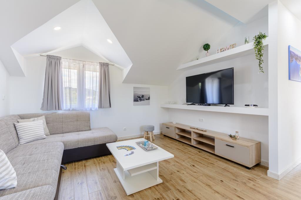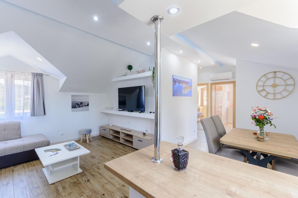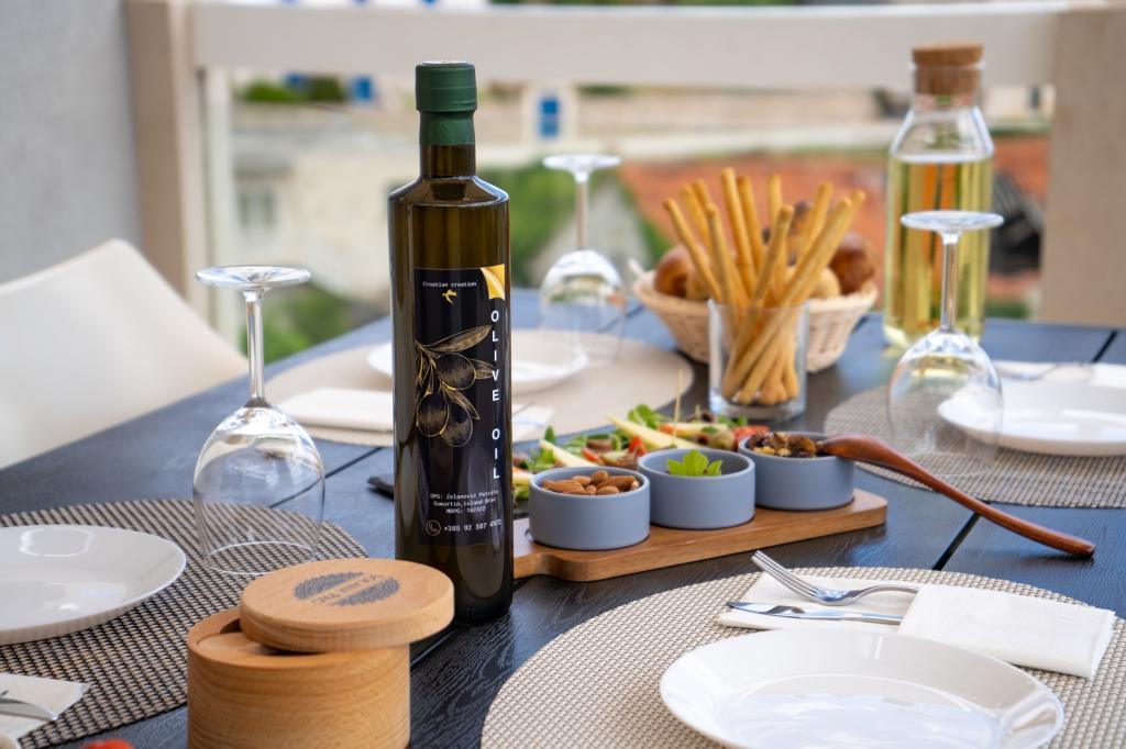 Vi tilbyder dig en rummelig privat terrasse, perfekt til afslapning eller at nyde måltider udendørs, en grillplads med det nødvendige udstyr, et moderne, fuldt udstyret køkken (opvaskemaskine, køleskab med fryser, ovn, mikrobølgeovn, elkedel, brødrister, blender, Dolce Gusto-kaffemaskine, krydderier...), en komfortabel stue (gratis Wi-Fi, satellit-tv, Netflix, aircondition), to soveværelser med komfortable dobbeltsenge (sengelinned og håndklæder inkluderet), et badeværelse (hårtørrer, vaskemiddel, tørrestativ, bodyshampoo...), gratis, sikker parkering reserveret eksklusivt til vores gæster, og en prøvesmagning af lokale produkter fra vores familiegård, herunder ekstra jomfruolivenolie og et udvalg af traditionelle ø-delikatesser - en ægte smag af vores arv!