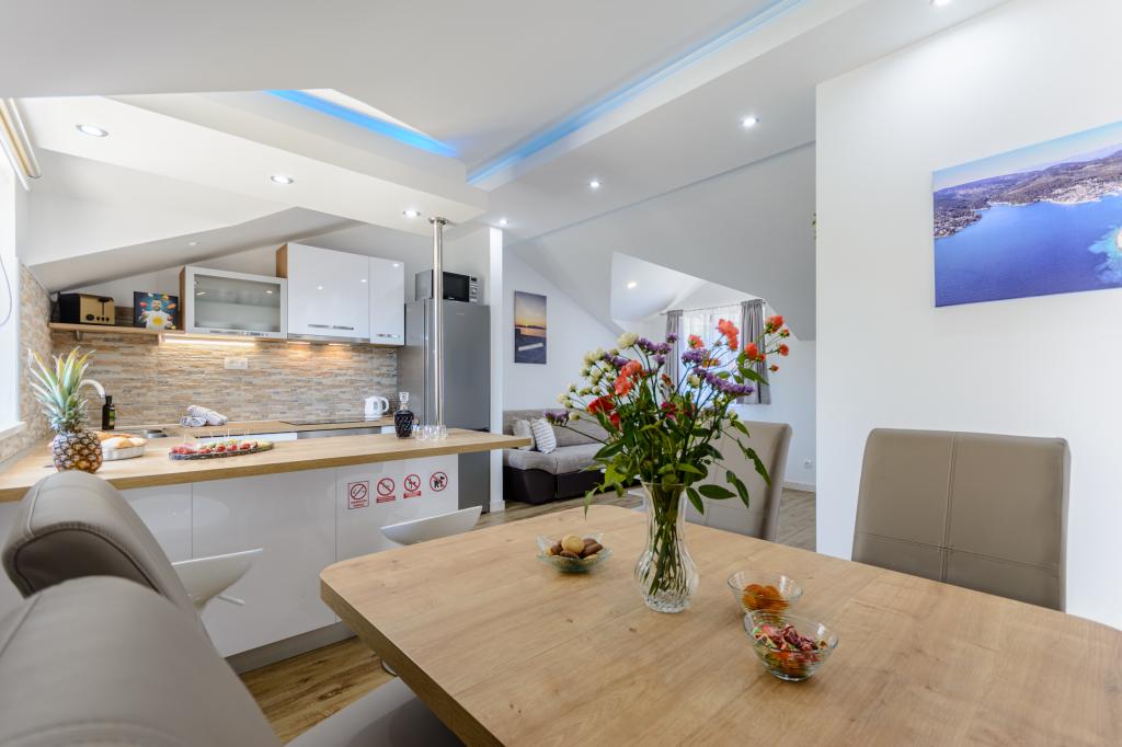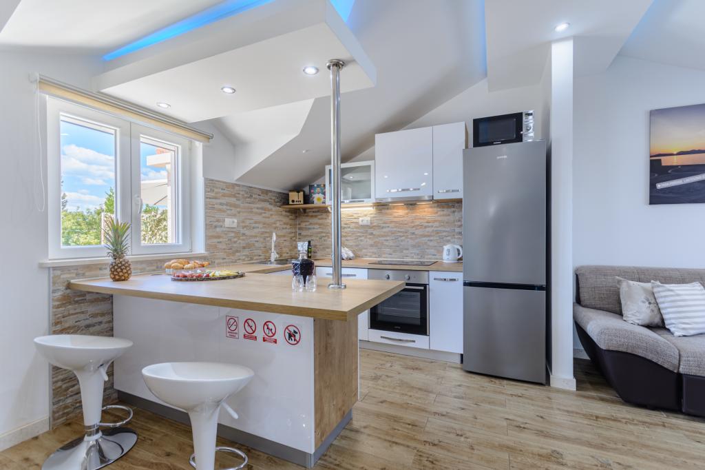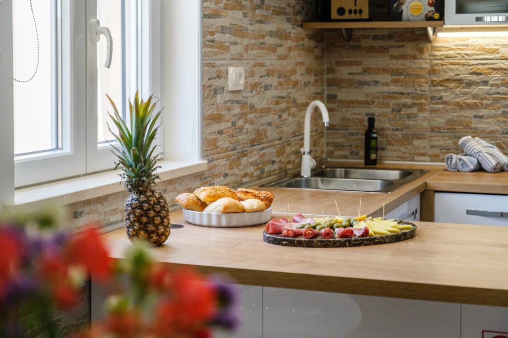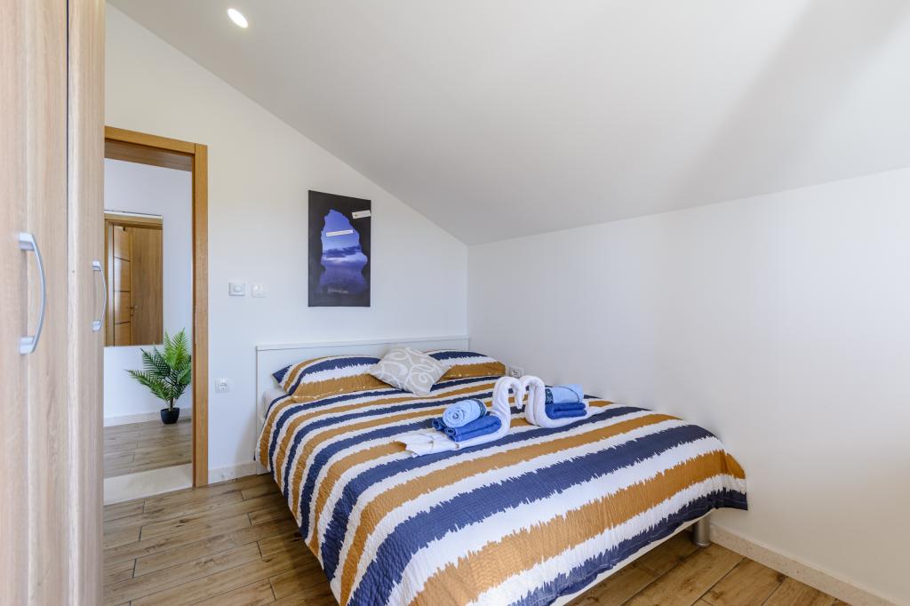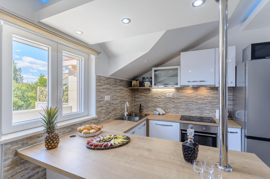 Vi tilbyder dig en rummelig privat terrasse, perfekt til afslapning eller at nyde måltider udendørs, en grillplads med det nødvendige udstyr, et moderne, fuldt udstyret køkken (opvaskemaskine, køleskab med fryser, ovn, mikrobølgeovn, elkedel, brødrister, blender, Dolce Gusto-kaffemaskine, krydderier...), en komfortabel stue (gratis Wi-Fi, satellit-tv, Netflix, aircondition), to soveværelser med komfortable dobbeltsenge (sengelinned og håndklæder inkluderet), et badeværelse (hårtørrer, vaskemiddel, tørrestativ, bodyshampoo...), gratis, sikker parkering reserveret eksklusivt til vores gæster, og en prøvesmagning af lokale produkter fra vores familiegård, herunder ekstra jomfruolivenolie og et udvalg af traditionelle ø-delikatesser - en ægte smag af vores arv!
