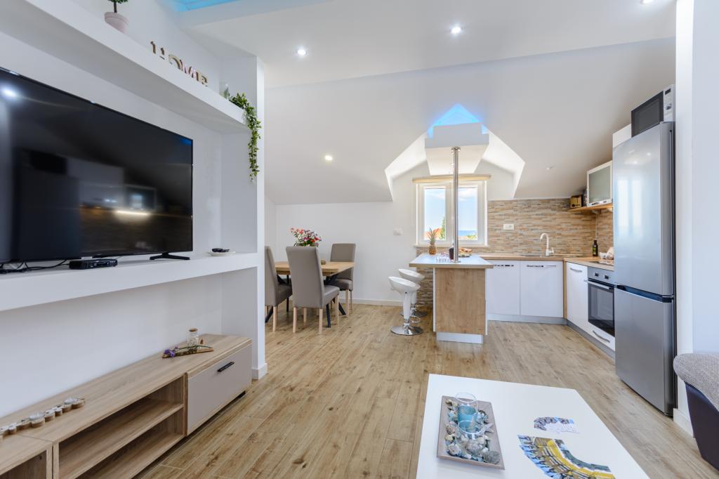 Velkommen til vores charmerende lejlighed beliggende i centrum af Sumartin på den smukke ø Brač. Kun 100 meter fra havet tilbyder lejligheden den perfekte kombination af komfort og bekvemmelighed. Lejligheden har plads til op til 5 gæster (4+1) og er ideel til familier, par eller venner, der ønsker at slappe af og nyde øens charme. Nyd et fredeligt ophold i gåafstand fra strande, restauranter og havnen. Der er også en sikker parkeringsplads til rådighed. Vi ser frem til din ankomst!