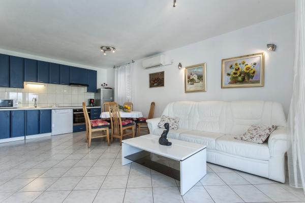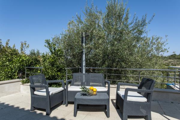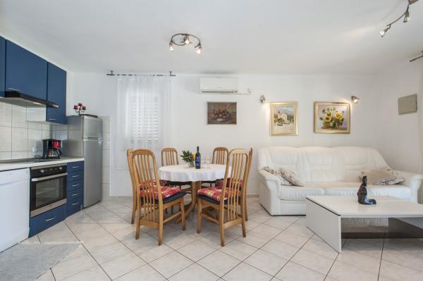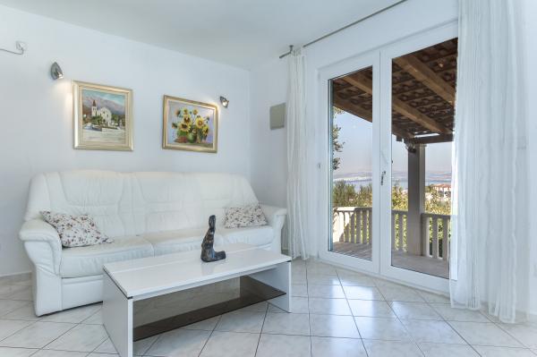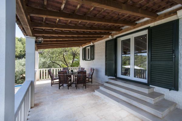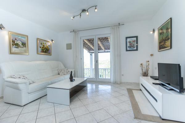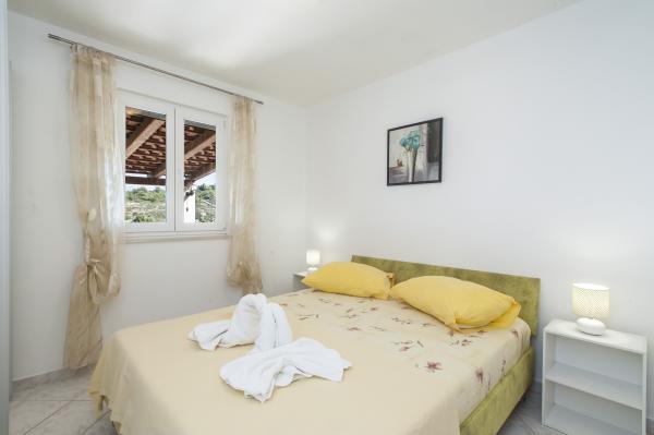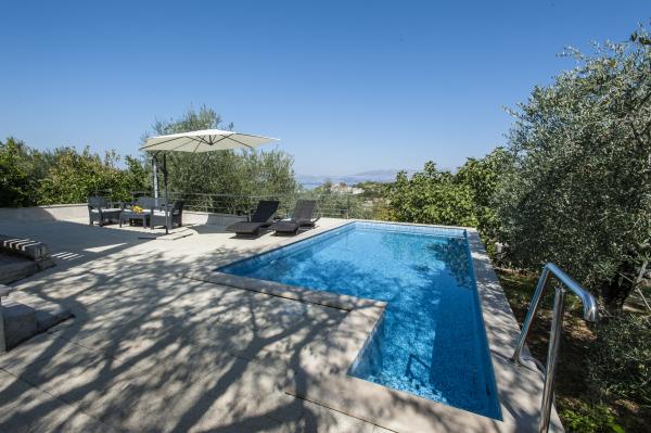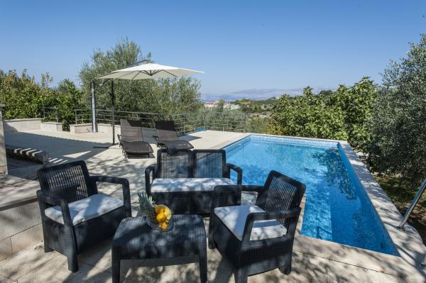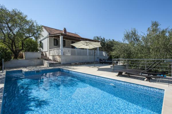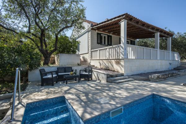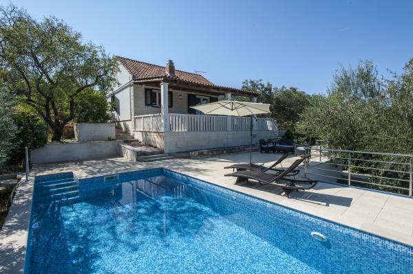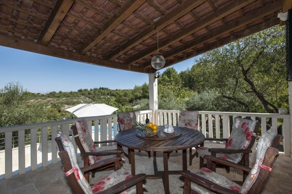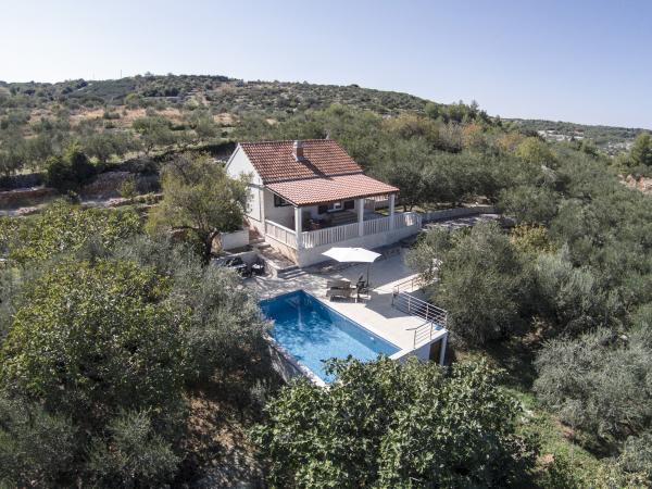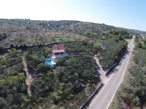 Fuldt udstyret hus på øen, omgivet af oliventræer. Med en stor overdækket terrasse giver en panoramisk udsigt over byen Bol, havet og byen Split. Overdækket terrasse har havemøbler På vestsiden er der en terrasse med en grill. Huset har plads til to parkeringspladser. Huset har 2 soveværelser. I køkkenet, stuen har en sovesofa. Køkkenet har en opvaskemaskine. Badeværelset har et brusebad, toilet, håndvask og vaskemaskine. Placer fuld af sandstrande, som kan nås med bil. I landsbyen er forskellige catering og sportsfaciliteter. Elskere af cykling kan nyde de 25 cykelstier på øen.