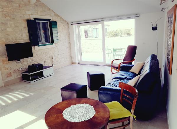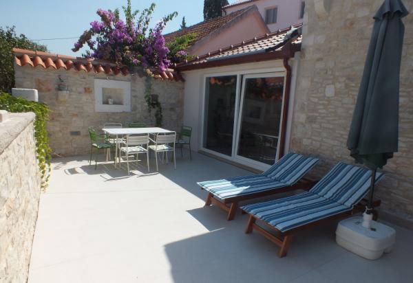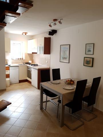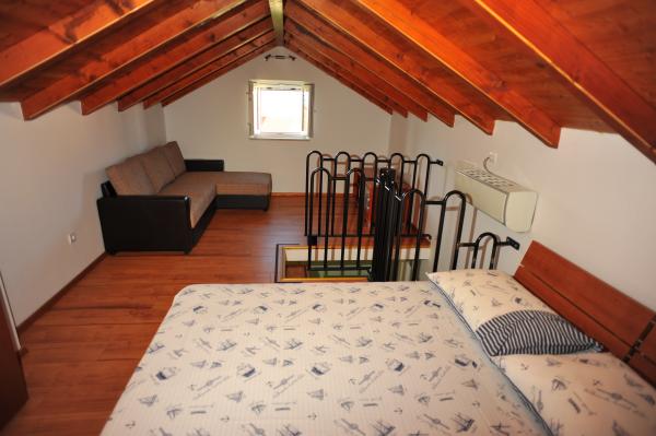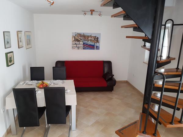 House Mihaela, 50 m fra stranden, i den rolige side af byen. Interessant designet og udstyret rum, størrelsen på ca. 75 m2 terrasse i haven. Soveværelse er placeret på første sal, med udsigt over havet. Det har en dobbeltseng og en enkeltseng. I stueetagen er et fuldt udstyret køkken med en stor spisestue, er døren forbundet med en stor stue med adgang til en intim terrasse i haven. Badeværelset har et brusebad / bad.