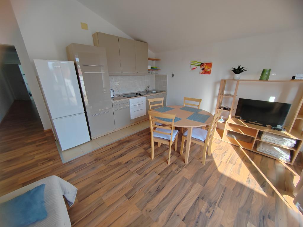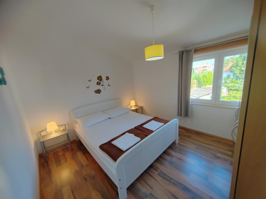 Nær centrum og stranden (150 m). To lejligheder ligger i et familiehus (på første sal), som ligger 150 m fra stranden og byens centrum. Hver lejlighed har to soveværelser, et badeværelse, en vaskemaskine, aircondition, et køkken med spiseplads og en sofa, der kan bruges som en ekstra seng, samt en stor terrasse (20m2). Alt er inkluderet i prisen. Der er en grill i haven. Parkering er placeret foran huset i skyggen. Lejligheden er på 70 m2.