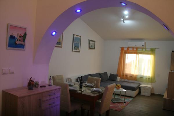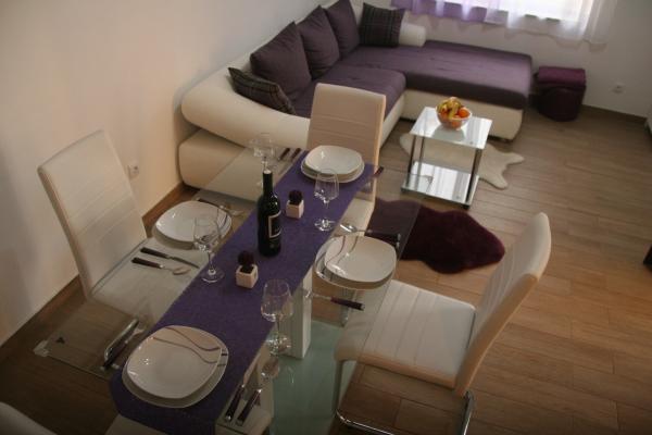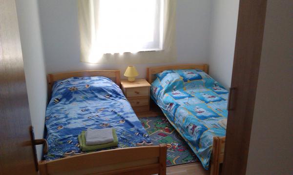 Lejlighederne ligger i en helt rolig del af byen, 5 minutters gang til centrum, 7 minutter til stranden. I alt arten, ideel til en rolig ferie og spil til børn. Hver lejlighed er moderne, er placeret på en separat etage og har egen indgang. Hver har 2 soveværelser, 1 badeværelse, fuldt udstyret køkken, stor stue med sofa til yderligere 2 personer og en terrasse / balkon med havudsigt. I haven er der en præfabrikeret swimmingpool og trampolin - fri afbenyttelse. Lejlighederne er udstyret med aircondition, koster 5 € per dag i brug. Tilgængelige grill. Parkering er gratis. Vaskemaskine er også tilgængelig, første vask er gratis, hver følgende debiteres 5 €. Vært er til rådighed under dit ophold. Hjælp med grill og grill er også tilgængelig på anmodning.