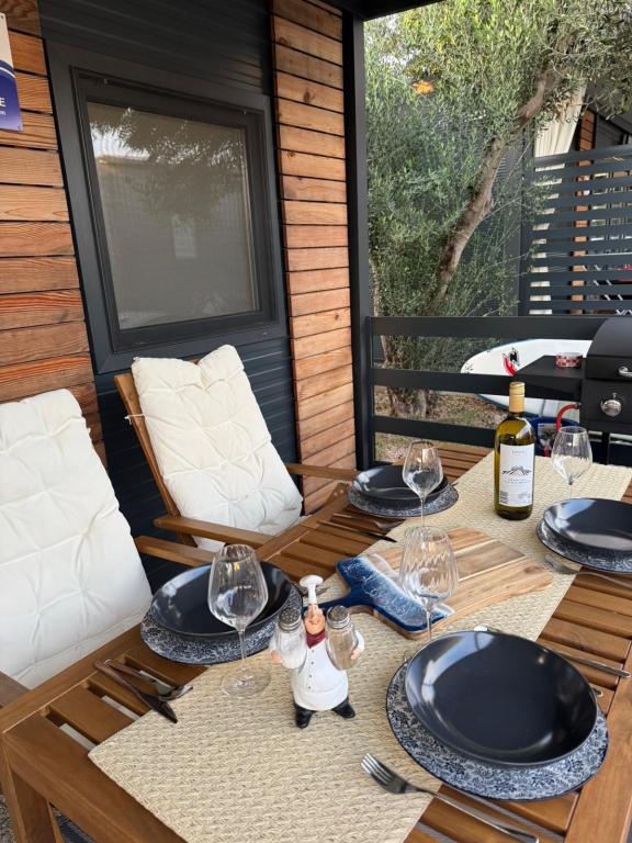 Et smukt mobilhome ved havet, kun få skridt fra en smuk stenstrand og en rolig kyst, tæt på restauranter og caféer, behageligt til hvile og samvær med venner, velegnet til børn, da de kan gå til svømmetur fra selve huset.