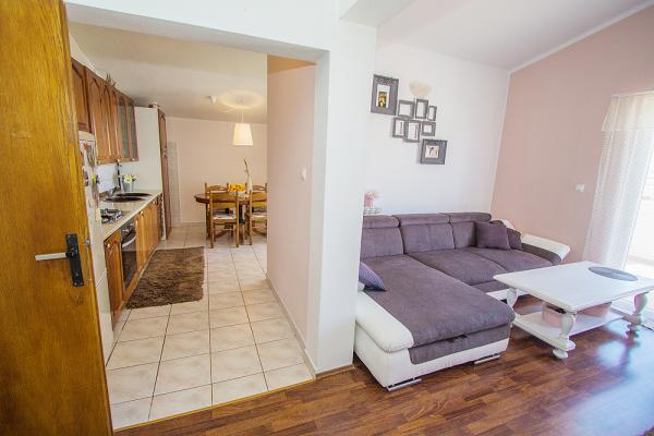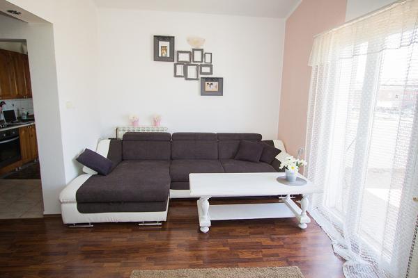 Lejligheden er beliggende i centrum af Tribunj, på første sal af huset, med en smuk udsigt over havet, lystbådehavnen og den gamle del af byen. Den består af to soveværelser med dobbeltsenge, badeværelse med bruser, stue, køkken og spisestue. Lejligheden har en separat indgang og to store altaner. I nærheden er der stranden, legeplads, butik, posthus, bank, restauranter. Det ideelle valg for elskere af fred og for familier med børn.