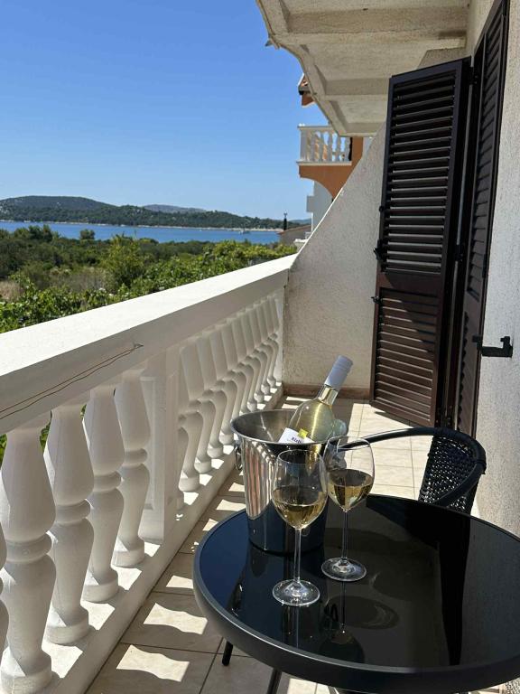 Lejligheder - Emelie, beliggende i en rolig og meget smuk del af Tribunj, med plads til 2 til 22 personer, lejlighederne har havudsigt og eget køkken, toilet og bruser. Gratis trådløst internet er tilgængeligt for vores gæster. Grill, parkering. I lejlighed 2 + 1 (2 voksne og et barn op til 12 år). Havet ligger 300 m fra lejligheden, stranden er velegnet til børn. Der er mange muligheder for udflugter, f.eks. (Krka, Kornati, Plitvicesøerne, Paklenica). Du er velkommen i Lejligheder-Emelie.