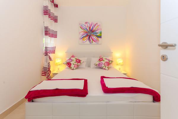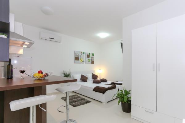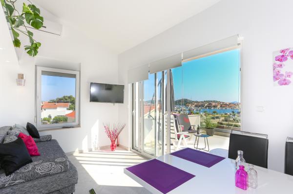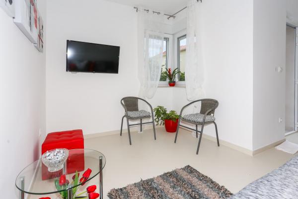 Dette moderne anlæg er beliggende i en 4 minutters gang fra stranden. Faciliteten Tribunj Suites ligger i en rolig del af Tribunj, ved 1, 2 km fra Tribunj havnen og 200 m fra Tribunj marina. Ejendommen byder på indkvartering med aircondition, gratis trådløs internetadgang og fri privat parkering. Alle enheder har et opholdsområde og spisestue. Nogle har en terrasse og / eller altan. Alle enheder har køkken udstyret med mikroovn, brødrister, køleskab, komfur og elkedel. De har også eget badeværelse med brusebad og hårtørrer. Gæsterne kan benytte grillfaciliteterne på stedet Tribunj The Suites. lufthavn Zadar er 49 km fra ejendommen Den Tribunj Suites.