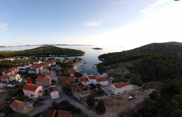 Fuldt møbleret lejlighed i en rolig del af Tribunj (Sovlja)., Placeret på andenpladsen til havet. Anlægget er placeret 50 meter fra stranden og 1 km fra centrum. I nærheden er restauranter og pizzeriaer. Vodice ligger 3 km derfra.