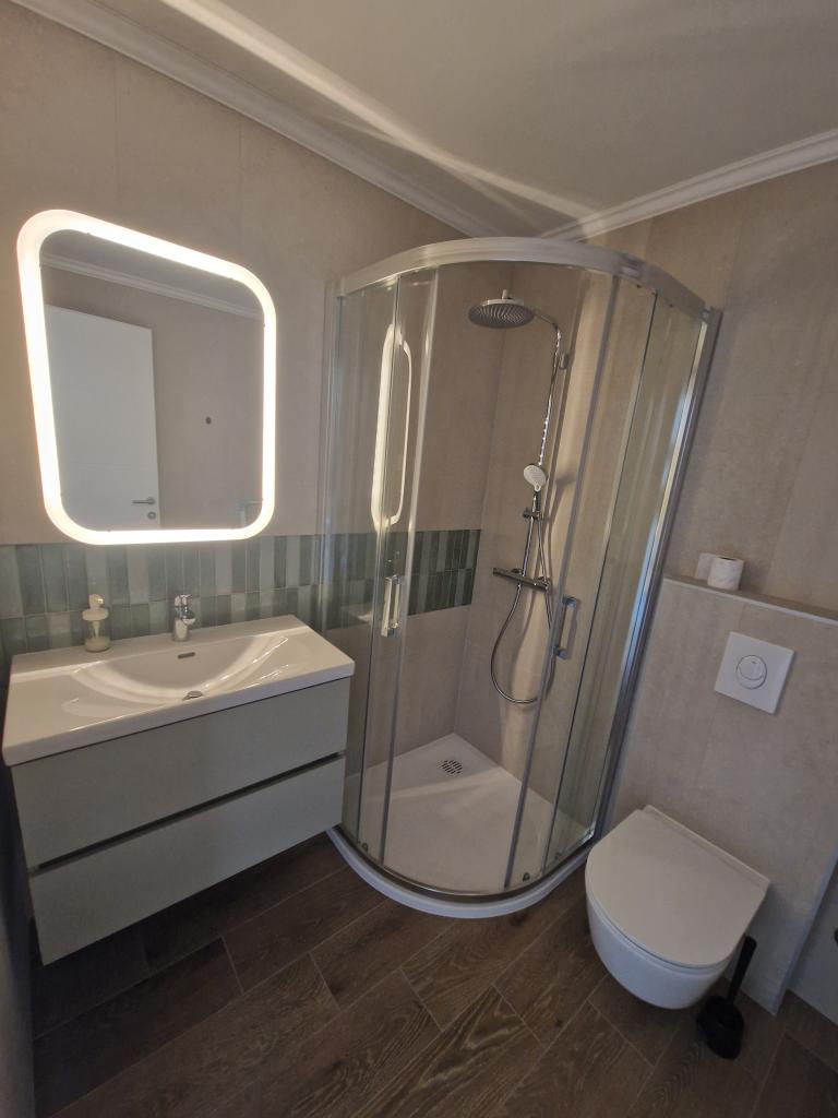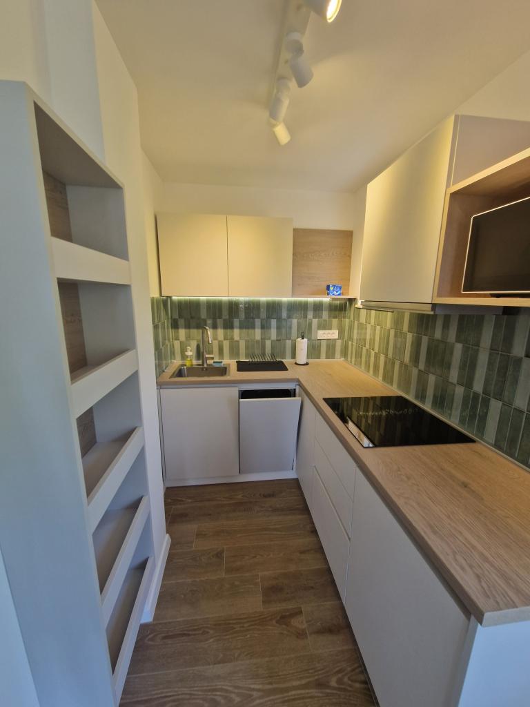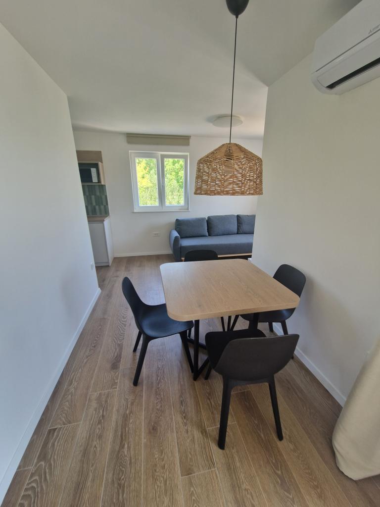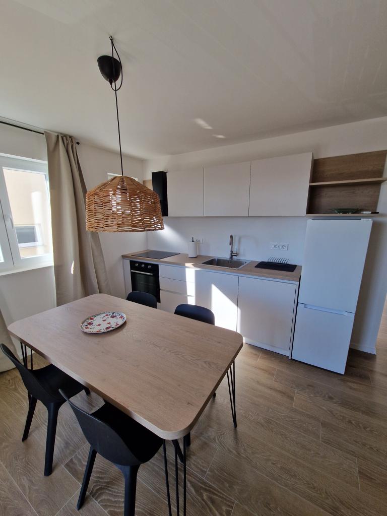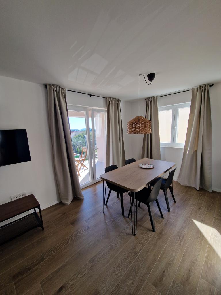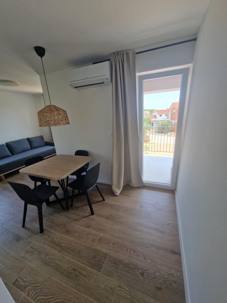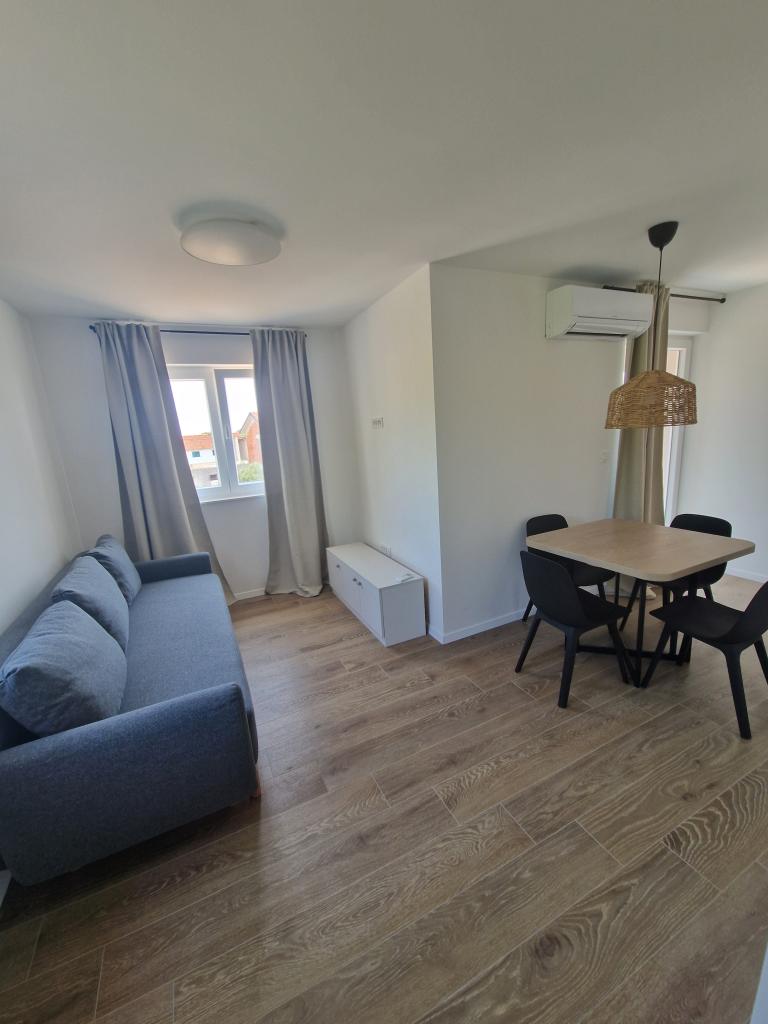 Lejlighederne Tribunj Cvitan er fuldt og moderne udstyrede. Lejlighederne ligger i en stille gade i Tribunj (Sovlje). Lejlighederne ligger på 1. sal, som nås via en separat udvendig trappe. Der er parkering til lejlighedens gæster, og indgangen til lejligheden er indhegnet med en automatisk port. Lejligheden ligger 5 minutters gang fra havet og ved siden af flere gode strande i området, og den nærmeste er Sovlje-stranden. Lejlighederne har et værelse med en dobbeltseng og en ekstra seng i spisestuen. I soveværelset er der et natbord med belysning ved siden af sengen og store skabe. Køkkenet er udstyret med alle nødvendige elementer, herunder opvaskemaskiner. Lejlighederne har også store, delvist overdækkede altaner, der vender mod øst det meste af dagen fra daggry, så du kan slappe af i solen på altanerne næsten hele dagen. Badeværelserne er moderne indrettede med brusekabiner. Lejlighederne har tv i spisestuen og gratis Wi-Fi.