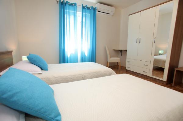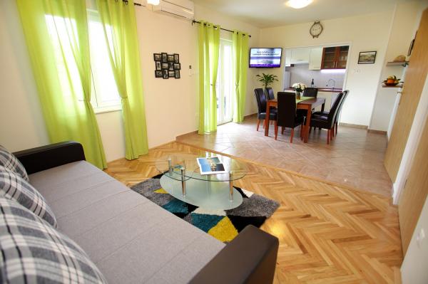 Lejlighed BIOCIC er beliggende i et roligt område af øen Ciovo, men kun 5 minutters gang fra byens centrum. Stranden er 10 minutters gang fra huset, og der er mulighed for mange andre strand enten med bil eventuelle taxi både, der afgår hver time i nærheden af anlægget. Lejlighed på 90 m2 20 m2 terrasse, tilbyder komfortabel indkvartering til 6 personer. To soveværelser, stue, spisestue og køkken og en rummelig terrasse giver dig alt hvad du behøver for et behageligt ophold tæt på byen alligevel væk fra byens larm. Lejligheden er fuldt air-condition (hvert værelse har sin egen aircondition) og udstyret med alle nødvendige husholdningsapparater (vaskemaskine, opvaskemaskine, mikroovn, køleskab med fryser, kaffemaskine, strygejern, pengeskab, TV og Wi-Fi uundgåelige), så du virkelig kan mærke derhjemme. Parkering er til rådighed ved siden af bygningen samt en privat bådplads i nærheden (gratis for ophold på 7 dage eller længere).