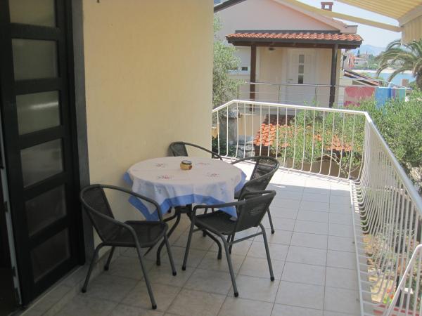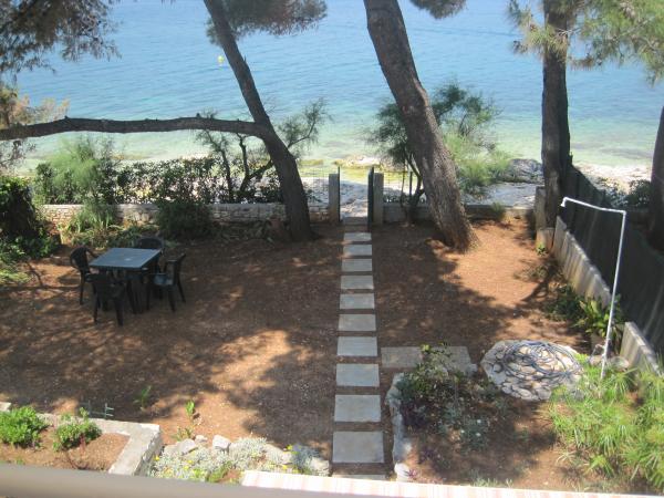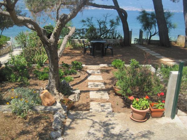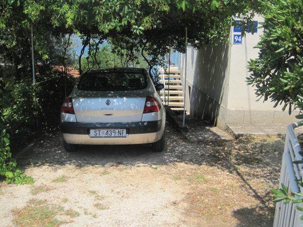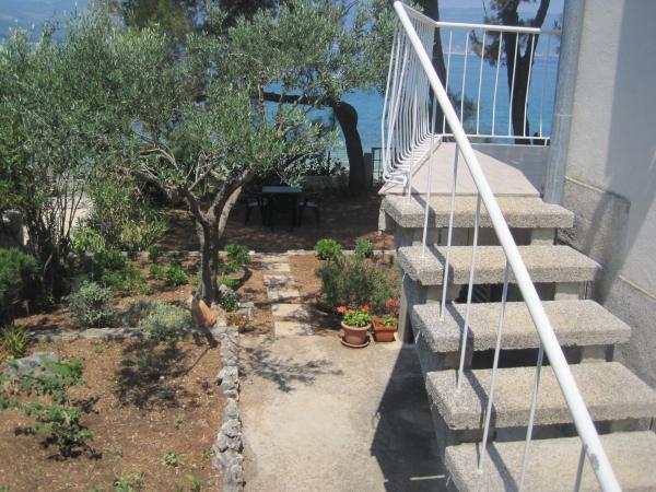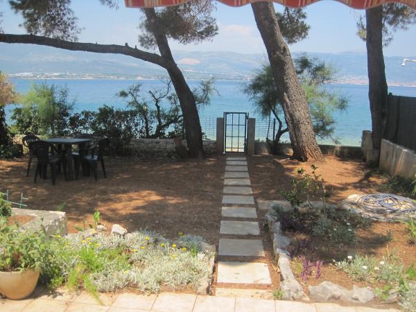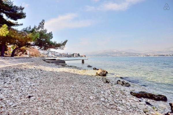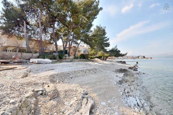 Lejligheden er beliggende tæt på havet, udgang fra haven er på stranden. Restaurant, butikker, barer, leje en cykel, leje en scooter er inden for 100 meter. Parkering ved bygningen og indhegnet. Større sted er byen Trogir er 4 km væk, forbundet med bus. Busstationen ligger 100 m.