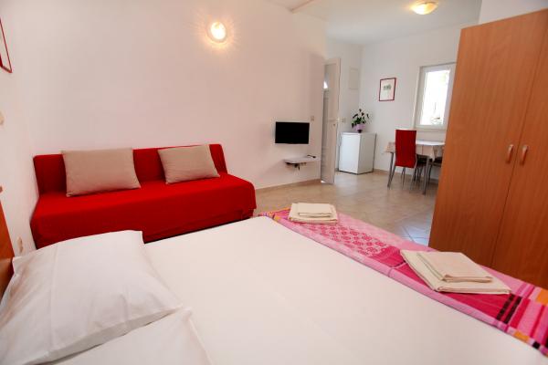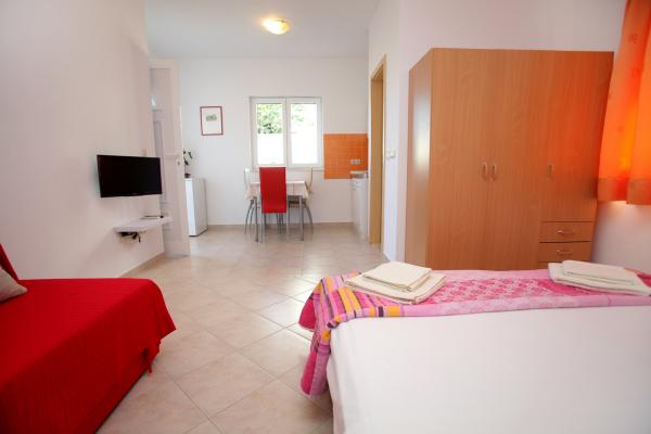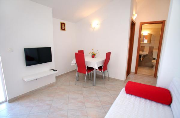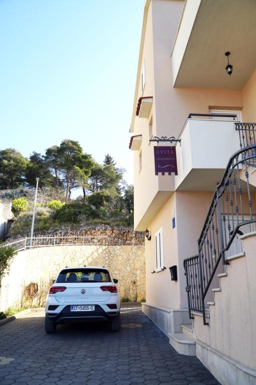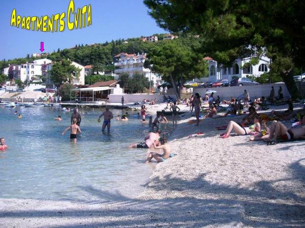 Apartments Cvita er beliggende på den sydvestlige side af øen Ciovo, 700 m fra byen Trogir og 200 m fra den første strand. To lejligheder ligger på anden sal i familiens hus, og den tredje i stueetagen og kan rumme fra 2 til 4 personer. 3. værelses lejligheden ligger på 1. sal. Studielejligheden ligger i stueetagen. Lejlighed (6) ligger i huset ved siden af denne i stueetagen. Alle lejligheder har direkte havudsigt (undtagen Studio) Parkering er til rådighed i gården foran bygningen. Ved siden af huset er der grill og plads til vaskemaskine. Vi har åbent hele året rundt. Velkommen!
