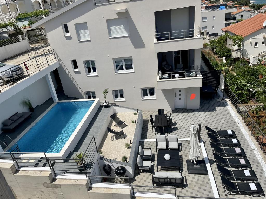 Dette var en perfekt ferie for os! Lejligheden såvel som komplekset og poolen er meget flot, moderne, hyggeligt og meget rent. Placeringen er meget rolig med en meget flot udsigt over havet! En lille købmand ligger inden for gåafstand. Den smukke by Trogir også. Du kan komme direkte til Split med båd "Buraline" fra Trogir. Samlet TOP 10/10! Tak og måske ses vi igen!