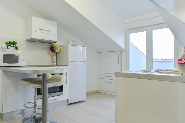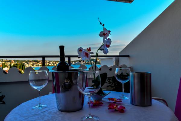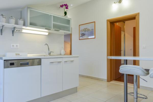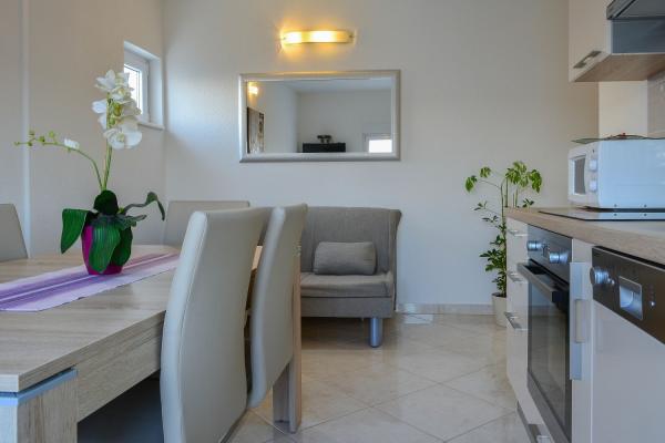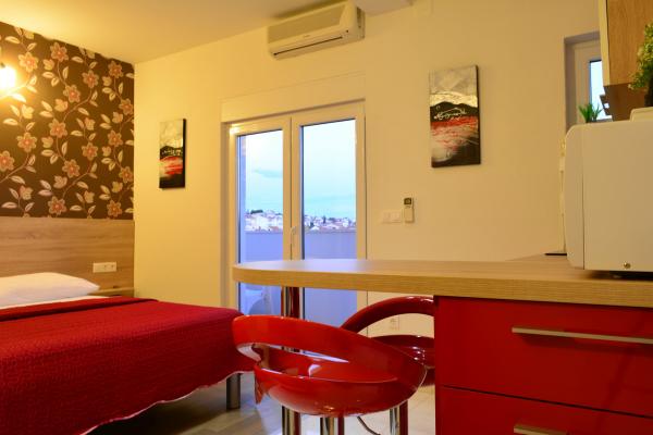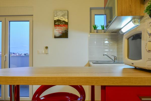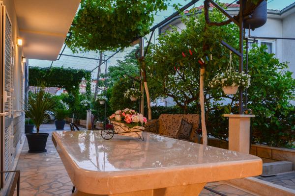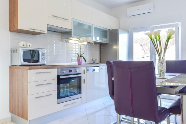 Luksuslejligheder Villa Tea ligger bare 50 m fra stranden i den øvre Amt og 1, 5 km fra Trogir. Lufthavnen ligger kun 5 km væk. For gæster er gratis privat parkering og trådløs internetadgang. Alle Apatmani har balkon med havudsigt og et fuldt udstyret køkken med opvaskemaskine, mikroovn og elkedel. Studio lejligheder og hvert soveværelse og stue i lejligheden er udstyret med et tv med satellit-tv og aircondition. Badeværelserne er udstyret med bruser, hårtørrer og toiletartikler. Strygejern og strygebræt er tilgængelige på anmodning. Lejlighederne består af to soveværelser med eget badeværelse i hvert værelse er til rådighed som en ekstra seng i stuen til to personer. Nærheden er der forskellige sportsfaciliteter som leje jetski, paragliding og også muligheden for bådture. Stranden er velegnet til børn med mini vandland