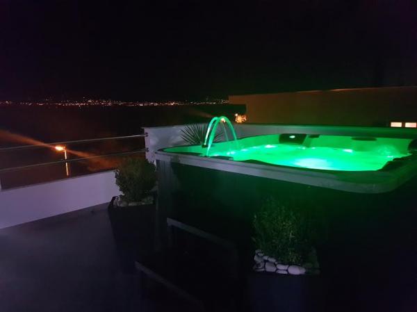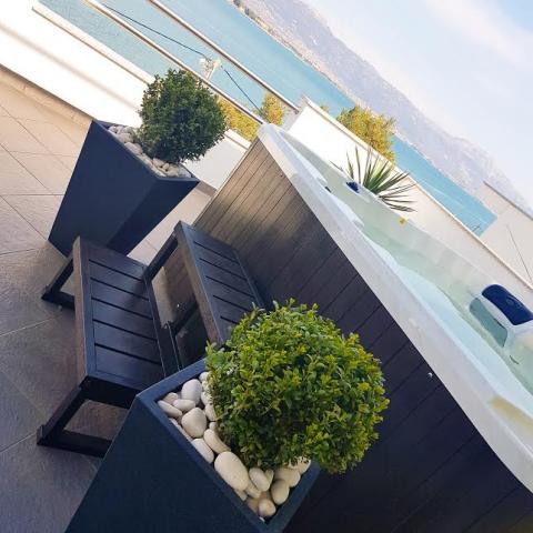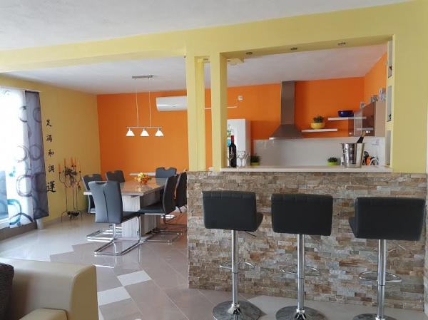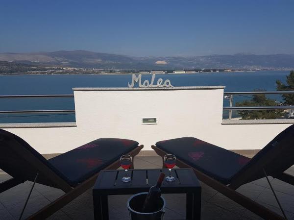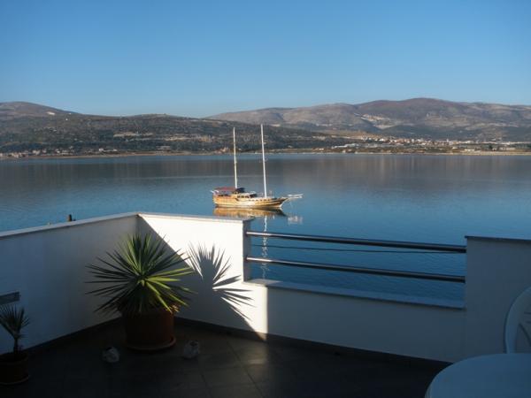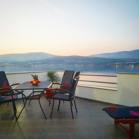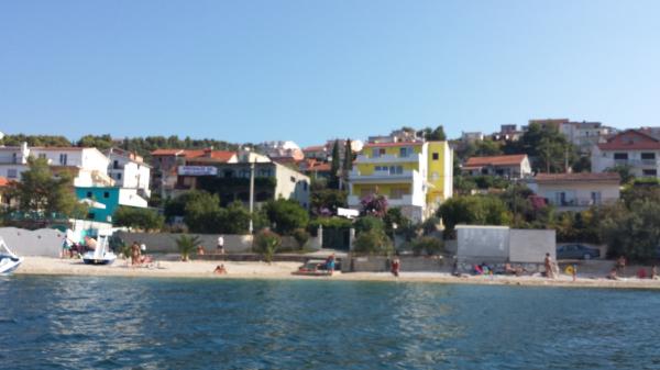 Lejlighederne ligger på øen Ciovo, i et roligt sted Okrug Gornji, på stranden med udsigt over havet. De nyrenoverede og moderne indrettede lejligheder har fuldt udstyret køkken, satellit-tv og aircondition, trådløs internetadgang. Luksus Apartment1 (2 2) er placeret på 2. sal i huset og området er 65m2 med en terrasse 35m2. Denne enorme terrasse vil være et sted for en mindeværdig og unikke minder og glæden ved solbadning og afslappende på liggestole og slappe af i den udendørs boblebad. med udsigt over havet. Luksus suite består af et soveværelse, badeværelse og en stor stue med køkken. Det er helt nyt møbleret med alle apparater. Lejlighed nr. 2 og NO. 3 (2 2) er placeret på 2. sal, men på den anden side af huset. De to lejligheder er dimensioneret omkring 35 m2, har et soveværelse, badeværelse, køkken, stue med sovesofa til to, en terrasse 5m2 med havudsigt. Har aircondition, grill og parkering. Lejligheder er små to kilometer fra UNESCO byen Trogir.