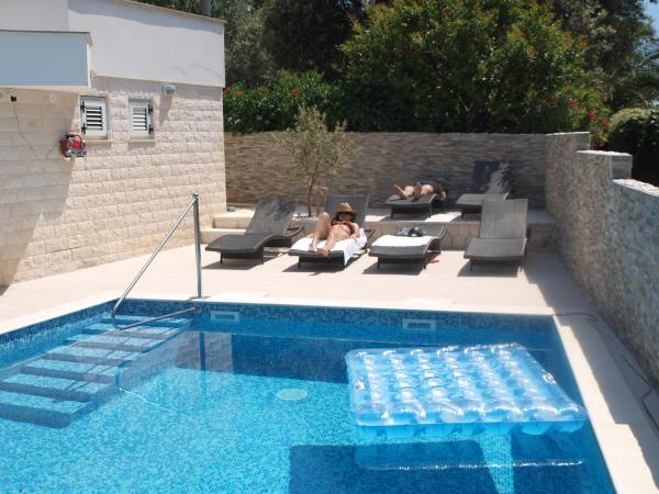 Lejlighederne Marko er beliggende i en rolig del af øen Ciovo, i Okrug Donji nær Trogir, som er under UNESCO beskyttelse. Lejligheder Marko ligger 100 m fra stranden, som kan nås ad stien gennem den smukke fyrreskov og grønne planter i Middelhavsområdet. Hver lejlighed er fuldt udstyret og moderne TV / time condition, Internet, 2 klimaanlæg, 2 badeværelser, stue, køkken, parkering, og en terrasse med udsigt over more.Pored facilitet blev bygget pulje på 34 m2. Byen Trogir er nær, der giver dig mulighed for at nyde 4000 års historie, og nyde nattelivet. Gæsterne kan organiseres gennem agenturer leje både, scootere, og dagsture til de omkringliggende øer. Lufthavnen ligger 10 km fra lejligheden. Lufthavnen er bekvemt kan leje et privat køretøj.