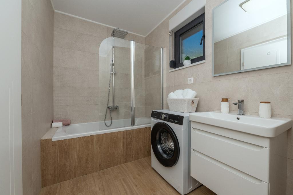 Til leje er en moderne indrettet og fuldt udstyret lejlighed på 100 m², beliggende i Tučepi, ideel til en familieferie. Lejligheden består af to soveværelser, to badeværelser, en rummelig stue med køkken og spiseplads samt en stor terrasse med panoramaudsigt over havet og øerne. Lejligheden har aircondition, gratis Wi-Fi, tv, vaskemaskine og opvaskemaskine. Der er parkeringsplads foran ejendommen. Afstanden til stranden er kun 5 minutters gang. Hvis du leder efter komfortabel indkvartering med krystalklart hav og en smuk promenade, vil vores lejlighed give dig den perfekte ferie.