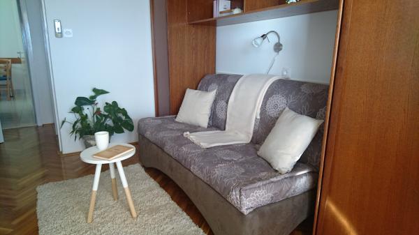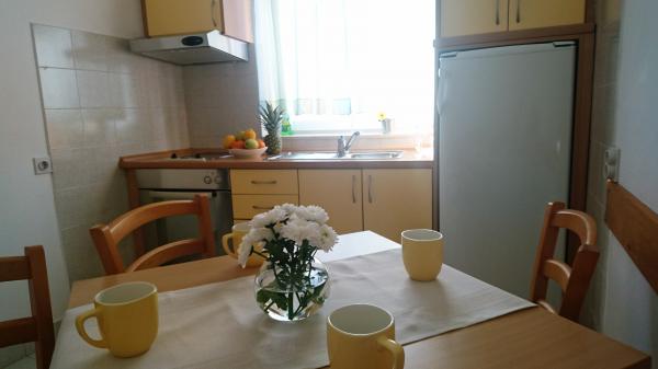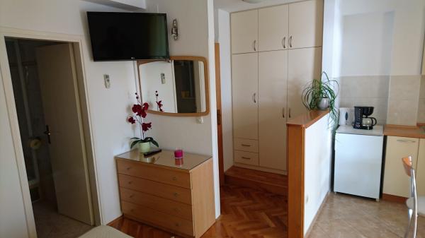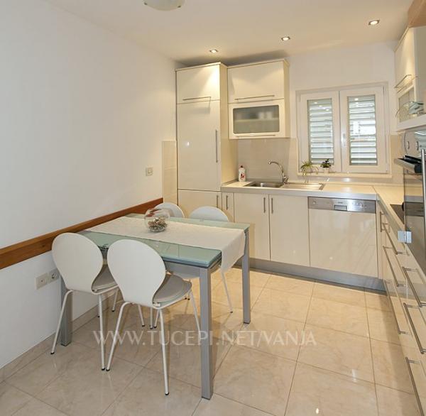 Lejlighed Vanja II er beliggende i centrum, 30 m fra den nærmeste strand, og tæt på restauranter, posthus, apotek ... Dette moderne indrettede deluxe lejlighed strækker sig over 3 etager, og hver har en balkon med udsigt over havet, hvor du kan nyde de smukke solnedgange! På første sal er der et rummeligt køkken (opvaskemaskine, mikroovn) og en stue på anden sal er et værelse med en dobbeltseng og et badeværelse på tredje sal i et værelse med en dobbeltseng og et værelse med en enkelt seng og et badeværelse! Hvert værelse har et tv, internet, air condition ... Apartment 4 1 (max 6 personer) er ideel til en familie eller to familier, hvor hver har sin egen privatliv!