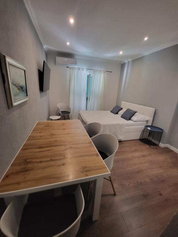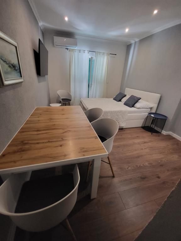 Fuldt udstyrede (renoverede) lejligheder 30 meter fra havet, sandstrand, objektet er beliggende i en rolig del af byen under motorvejen, en restaurant og en kaffebar er 20 meter fra huset, og vi sørger også for transport fra og til lufthavnen hvis du kommer med fly, 300 meter fra lejligheden er der en smuk bugt Dračevac hvor du har naturlig skygge fra fyrretræer, en del af stranden er beregnet til nudister, stranden for hunde er 150 meter fra huset, i cirka 20 minutters kørsel kan du nyde den smukke udsigt fra den nye skywalk-attraktion