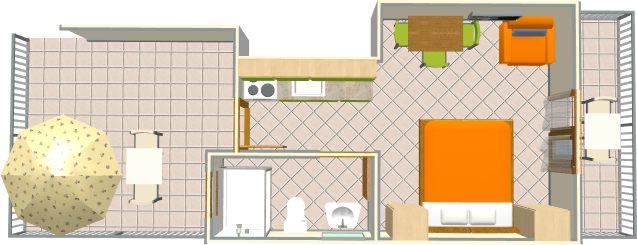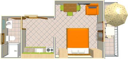 Ferielejlighed til to personer med ekstra seng (20 m2)
