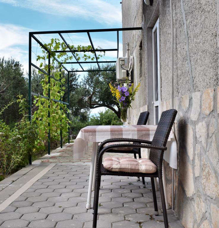 Dejligt sted! Det mest charmerende hus væk fra andre. Omgivet af grønne områder, oliventræer, en vidunderlig udsigt over bjergene og havet. Nederst en have med udsigt over hele byen og havet. Ejeren Marin er vidunderlig. Han bød os varmt velkommen. Han er meget udadvendt, imødekommende, hjælpsom, altid. Sammen med sin kone organiserede de middage for os, de tilbød deres egen vin og olivenolie. Nedstigningen til stranden tager cirka 8 minutter. Ved stranden, mange pubber, butikker, mere liv. Jeg kan personligt ikke lide lejligheder tæt på sådanne steder, men et eller andet sted uden for alfarvej, så jeg anbefaler dette sted jo mere. Tilsyneladende tæt, men en helt anden atmosfære, her vil du hvile efter en dag med vanvid. Jeg vil helt sikkert komme her igen!