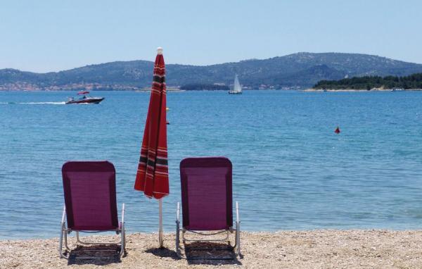 Lejlighed Nena er en lejlighed på 42 m2 på anden sal og er beliggende i et roligt kvarter lige uden for Turnja stranden, strandpromenaden. Turanj er en passage forbundet med stedet Sv. Philip James (10 minutter) og er tæt på butikker, restauranter og andre attraktioner. Bygningen har 2 soveværelser, badeværelse, stue med køkken og spisestue og en overdækket terrasse med udsigt over havet. I gården af bygningen også er en grill, og du kan bruge. Lejligheden er moderne og fuldt udstyret med aircondition, satellit-tv, el-grill, kaffemaskine, opvaskemaskine og vaskemaskine, mikrobølgeovn, etc. Gæsterne har en parkeringsplads foran bygningen. Lejligheden kan rumme op til 4 personer.