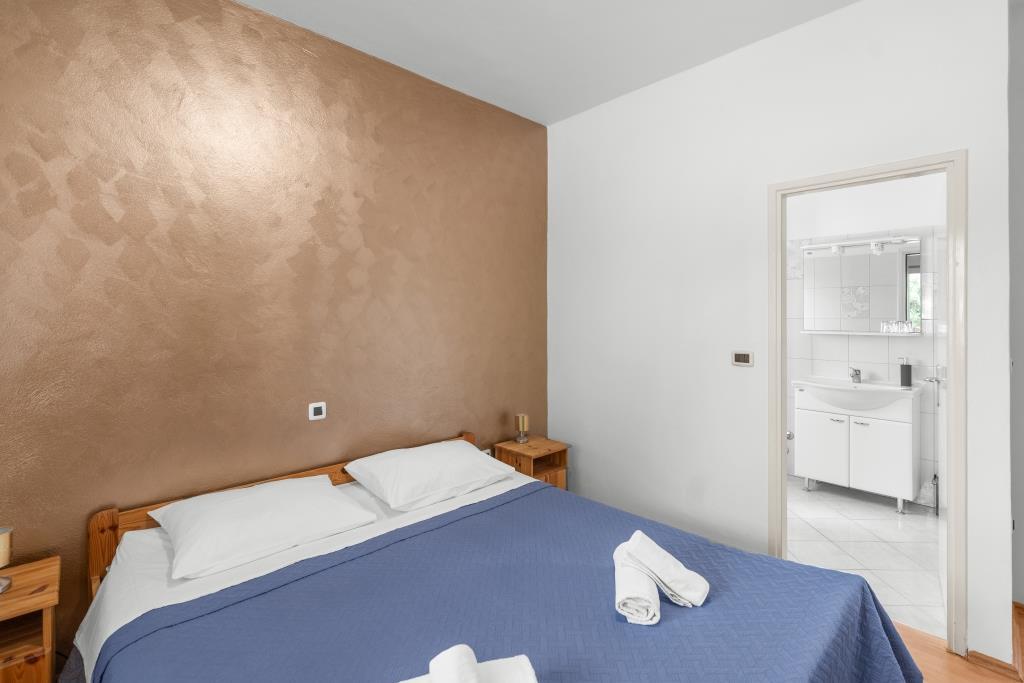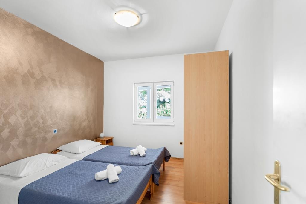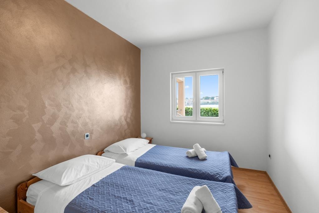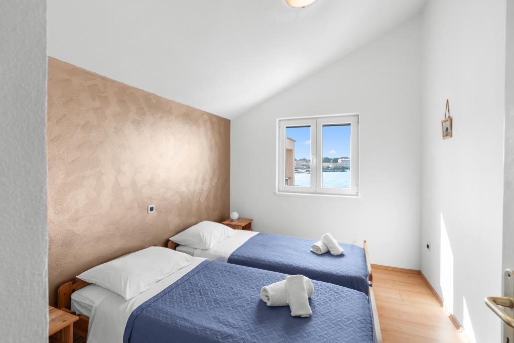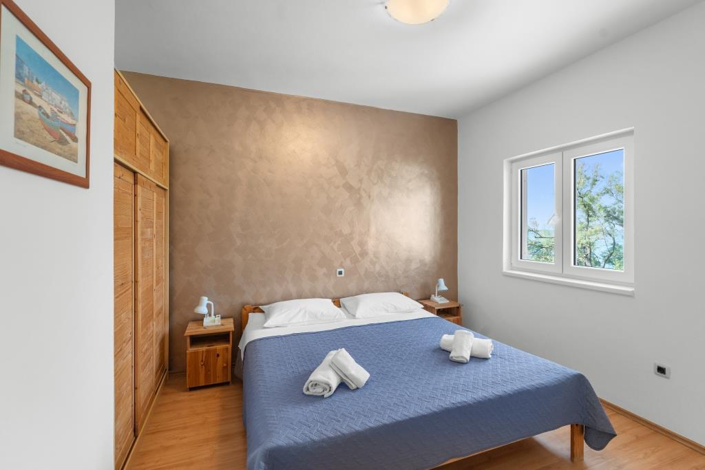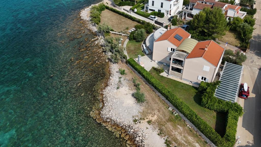 Lejlighederne ligger lige ved havet i fredelige og venlige landlige omgivelser. Hver lejlighed har en stor terrasse med havudsigt. De er omgivet af en anlagt middelhavshave, der er velegnet til leg for børn. Der er liggestole og fælles grill i haven. Hver lejlighed har 2 badeværelser. I nærheden, 5 minutters gang væk, ligger centrum, hvor der er et marked med produkter fra lokale gårde samt butikker og restauranter. Akut lægehjælp er tilgængelig 24/7. Stranden lige foran lejligheden er stenet, og der er flere strande i kort afstand, hvor der også er en sandstrand. Ankomst i bil: motorvejen fører direkte til færgehavnen i Gaženica. Derefter går du ombord på færgen til Preko. Om sommeren er køerne hyppige og kører mindst hver time. Fra Preko færgehavn, tag øens hovedvej for at nå byen Ugljan, som ligger 10 km væk. Ankomst med fly: Fra Zadar lufthavn med bus eller taxa på 15 minutter. Du ankommer direkte til færgehavnen i Gaženica, hvor du går ombord på færgen til Preko.