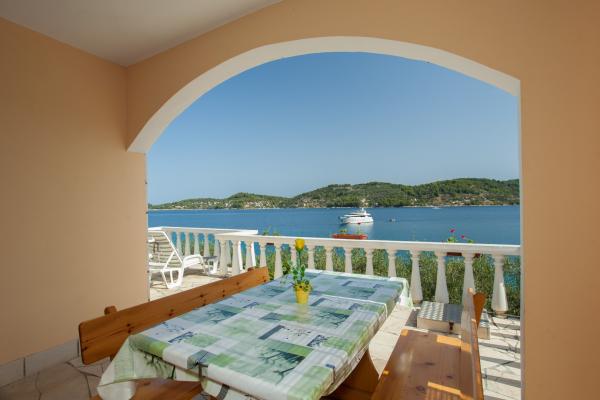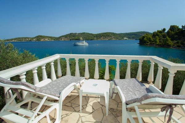 Huset er beliggende i en stille bugt nær Vela Luka. Det ligger kun 10 meter fra havet omgivet af oliventræer. Den rummelige terrasse med udsigt over bugten og øen Velaluka Ošjak. , Den består af to soveværelser, stue, køkken og toilet. Terrasse er 20 m2. Energi er en sol inverter 12v med 220 i. Du kan ikke bruge store elforbrugere. Det har en gas vandvarmer, gas køleskab og gaskomfur 160. For dem, der ønsker at nyde det klare hav og stilhed rigtige valg.
