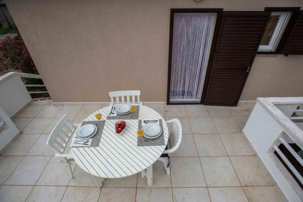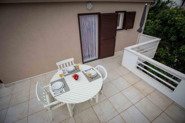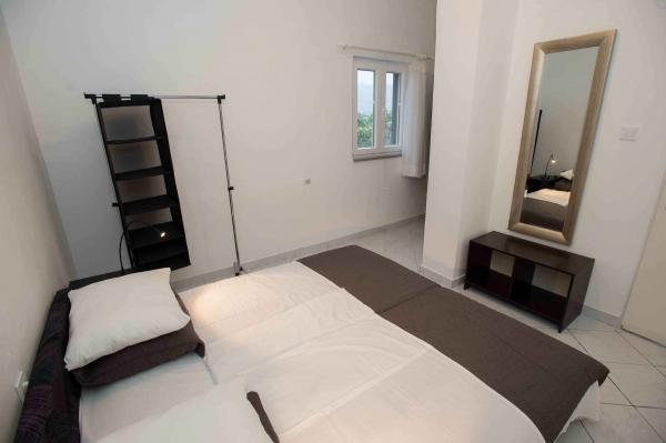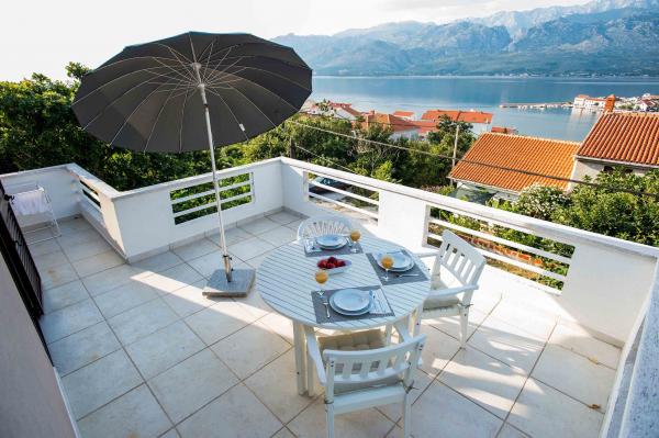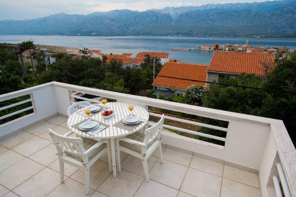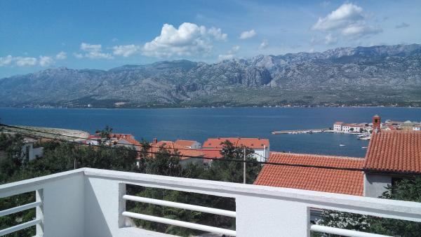 I år restaureret hus-tagdækning og facader med fremragende varmeisolering, er beliggende i et roligt område Vinjerca, omgivet af grønne områder, som ligger omkring 100 m fra havet. Lejligheden ligger på første sal. Fra den store terrasse er der en smuk udsigt over byen, havnen, havet. Udsigten strækker sig flere kilometer mod øst og vest, til en stor del af Velebit Kanal, og selvfølgelig den meget Velebit bjerget. Lejligheden har en stor stue, inden for hvilket er en del af spiseplads og fuldt udstyret køkken. Rummet har et TV-kamera med et væld af lokale og satellit-kanaler, rummelig sofa, der er en ekstra seng til en tredje person. I soveværelset er en stor dobbeltseng 180 x 200 cm, garderobeskab, stort spejl, lille kommode. I et lille badeværelse med toilet er alt du behøver. Hele huset har gratis Wi-Fi-forbindelse til internettet. Ud over eller i nærheden af huset er parkering. Sport fans kan på nærliggende veje at cykle, mountainbike, med en bro hop, elastikspring og Paklenici- fri climing.