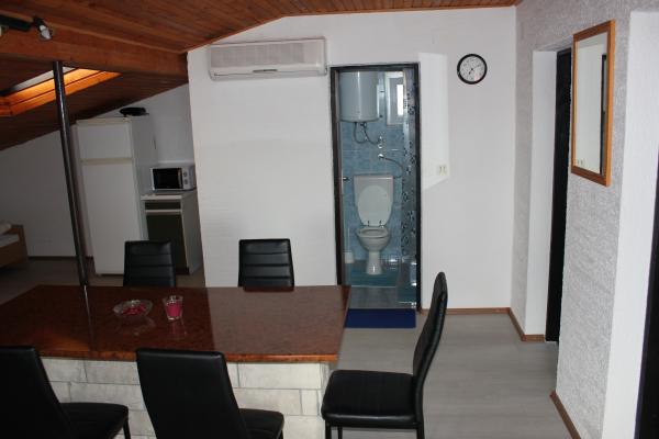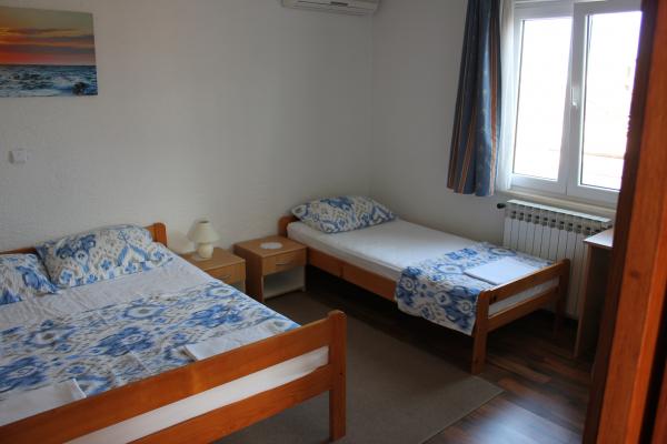 - Hus med 3 lejligheder. To lejligheder (A1, A2) er placeret på første sal, mens den tredje (A3) ligger på anden sal. A1 og A2 har tre senge i et soveværelse med en dobbeltseng og en enkeltseng. Begge har et køkken med balkon og et lille badeværelse. A3 har to soveværelser med 4 senge, lille køkken og badeværelse. Alle lejligheder har Wi-Fi, tv, aircondition, køleskab, mikrobølgeovn, vandkoger og parkering. Huset ligger 300m fra havet / stranden Lučica og 250m fra supermarkedet. Vand fra røret er ikke til at drikke.