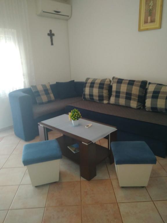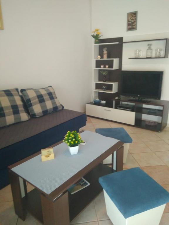Lejligheder fremragende, meget pæne og veludstyrede. Ejerne er meget venlige, gæstfri og hjælpsomme. Liggestole og en parasol til rådighed. På den ene side af lejligheden er der en terrasse og på den anden balkon (du vælger dig selv eller morgenkaffe i solen eller skyggen) begge med en smuk udsigt over havet og bjergene. Området er tæt på alt: butik, restaurant, bageri og is. Grill tilgængelig. Vi er meget tilfredse med ferien. Jeg vil anbefale!