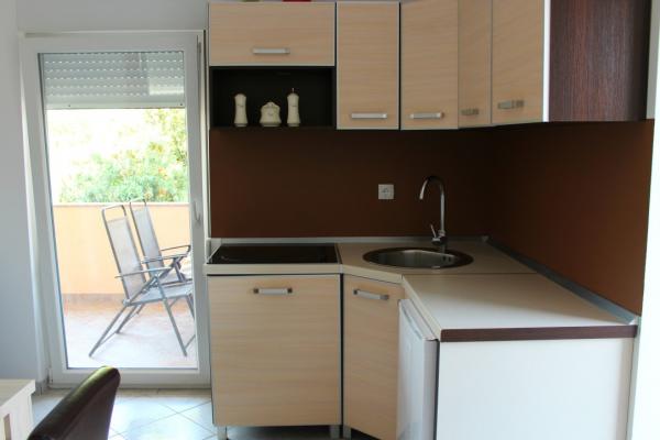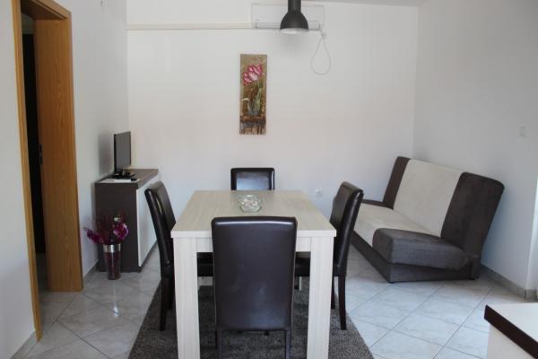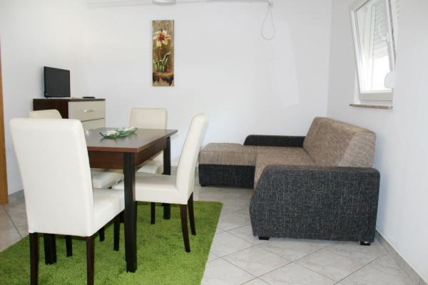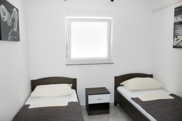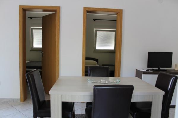 Smukt indrettede to værelses lejligheder på øen Vir Lejlighed 4-6 personer består af et soveværelse med en dobbeltseng, et soveværelse med to enkeltsenge, et fuldt udstyret køkken med alle nødvendige redskaber, en stue med sovesofa, et rummeligt badeværelse og en altan eller terrasse. Alle lejligheder har aircondition, tv-apparater og muligheden for gratis brug af internettet (Wi-Fi) Hver lejlighed har en separat indgang. Foran er en fælles have med grill.